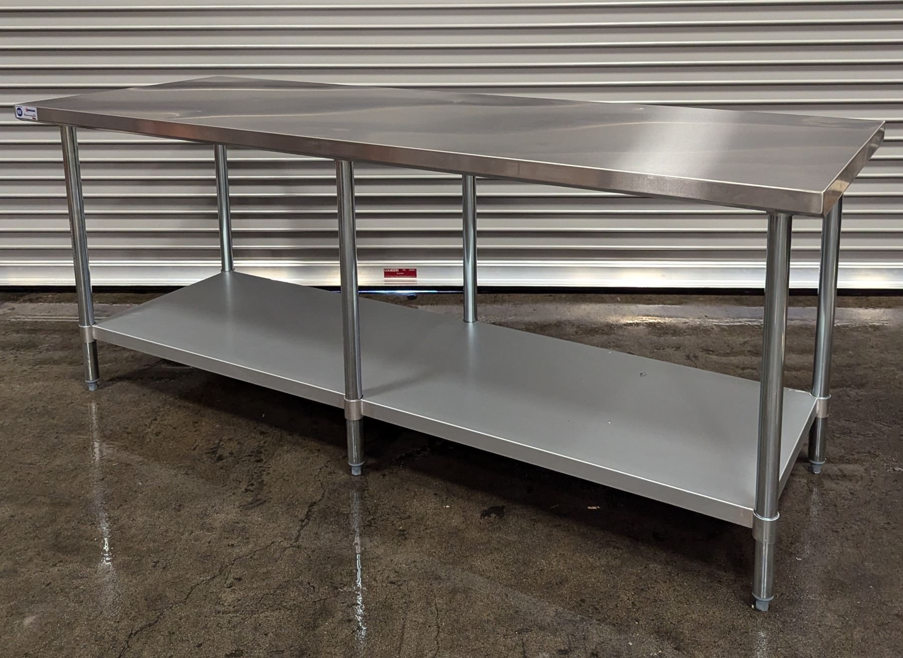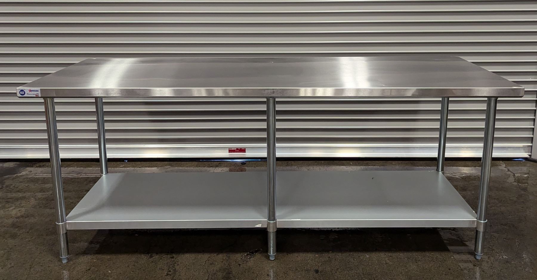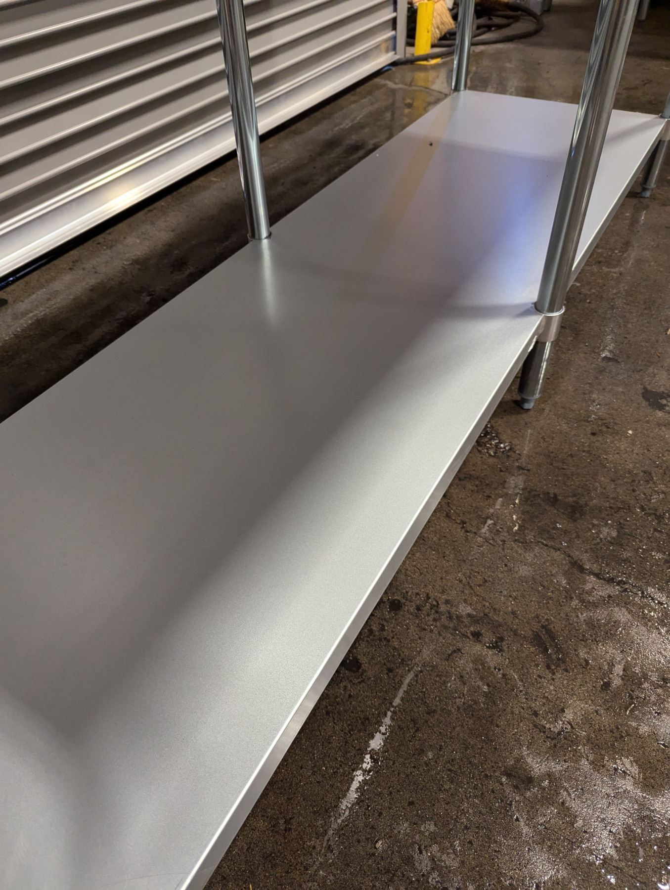 [New in Box,] 18 Gauge 430 Stainless Steel, Top Load Capacity: 1092lbs, Undershelf Capacity: 452lbs, Fully Adjustable Undershelf, Plastic Bullet Feet (34" Height Adjustable from 33.5" to 34.5",) Galvanized Legs