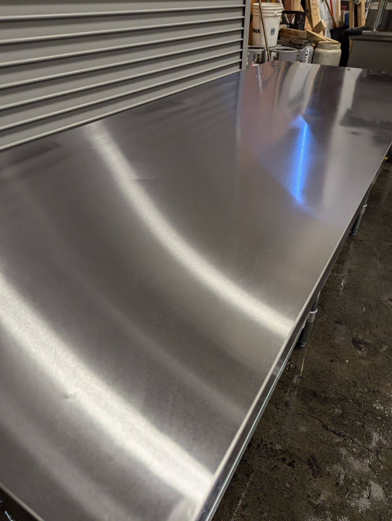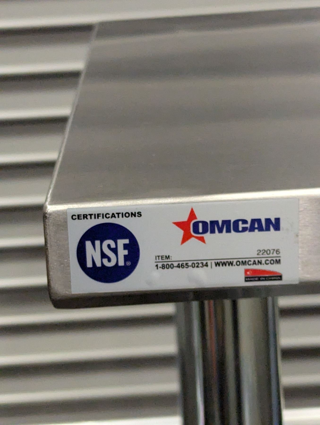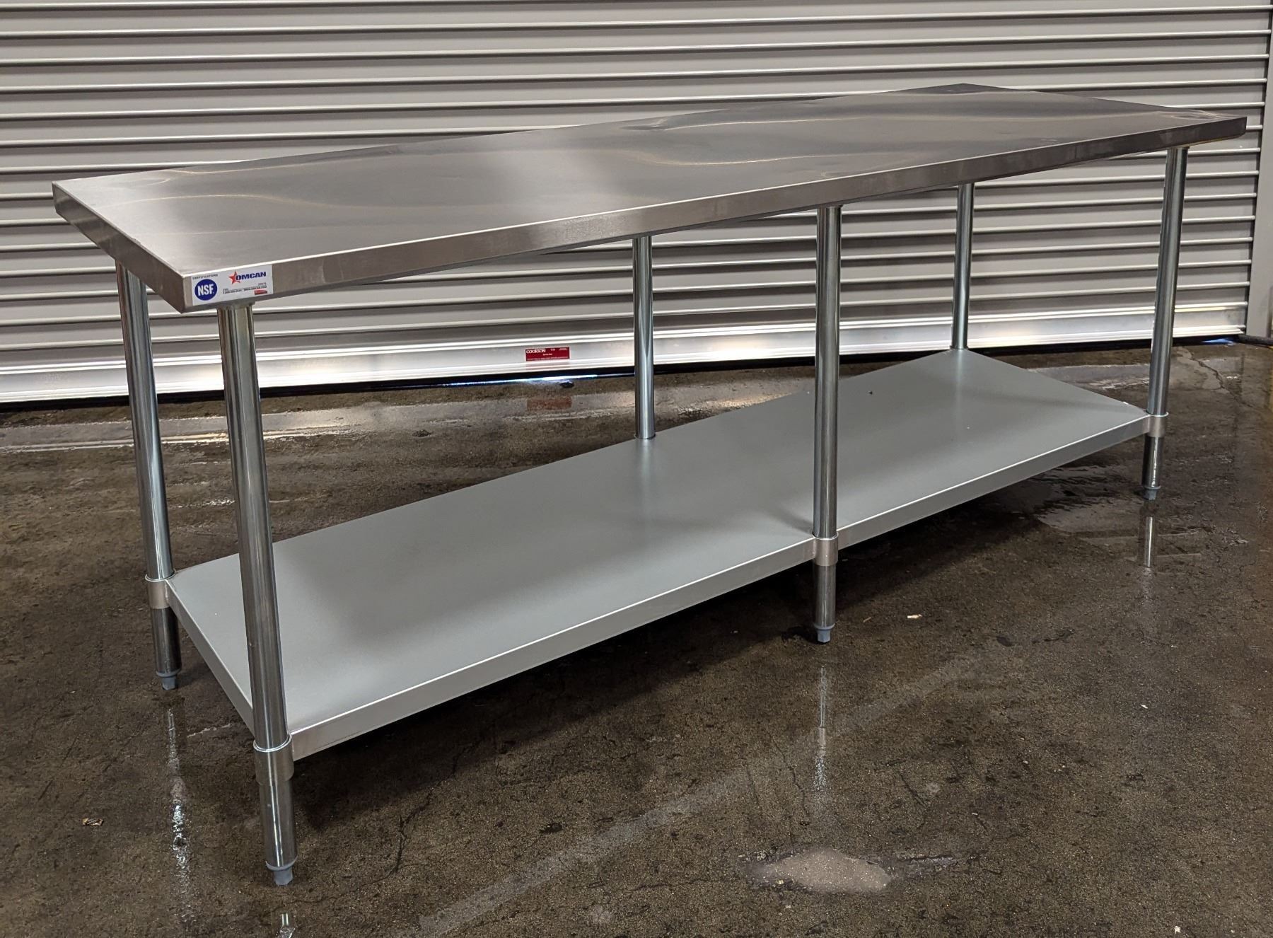 [New in Box,] 18 Gauge 430 Stainless Steel, Top Load Capacity: 1092lbs, Undershelf Capacity: 452lbs, Fully Adjustable Undershelf, Plastic Bullet Feet (34" Height Adjustable from 33.5" to 34.5",) Galvanized Legs