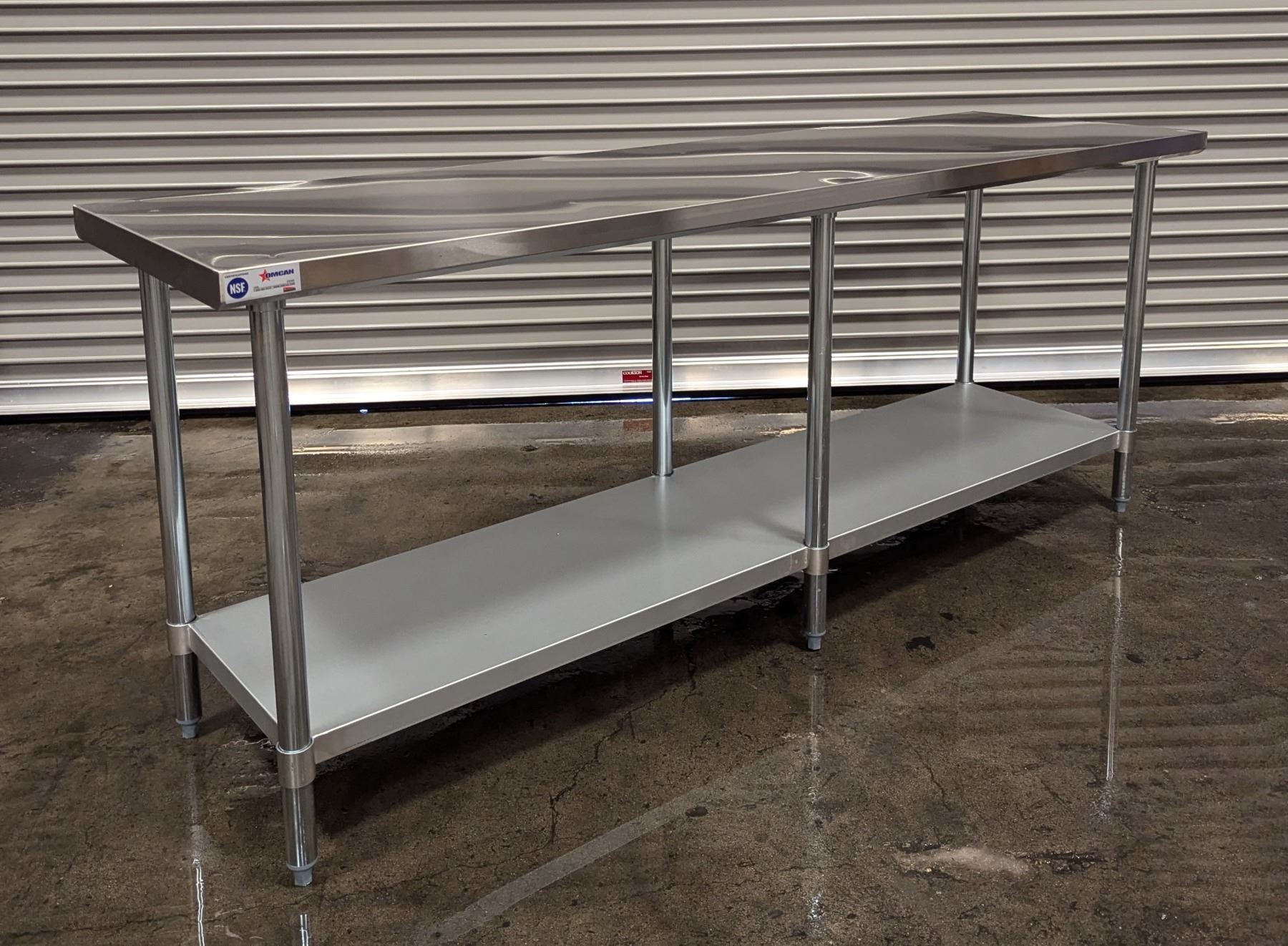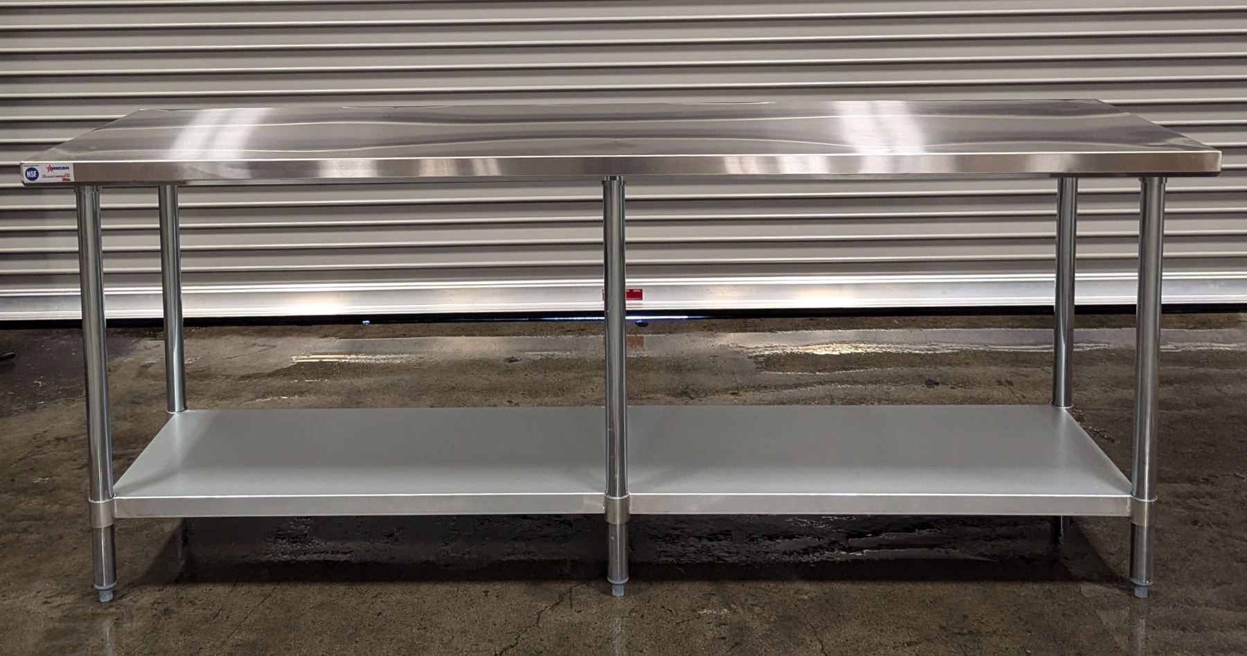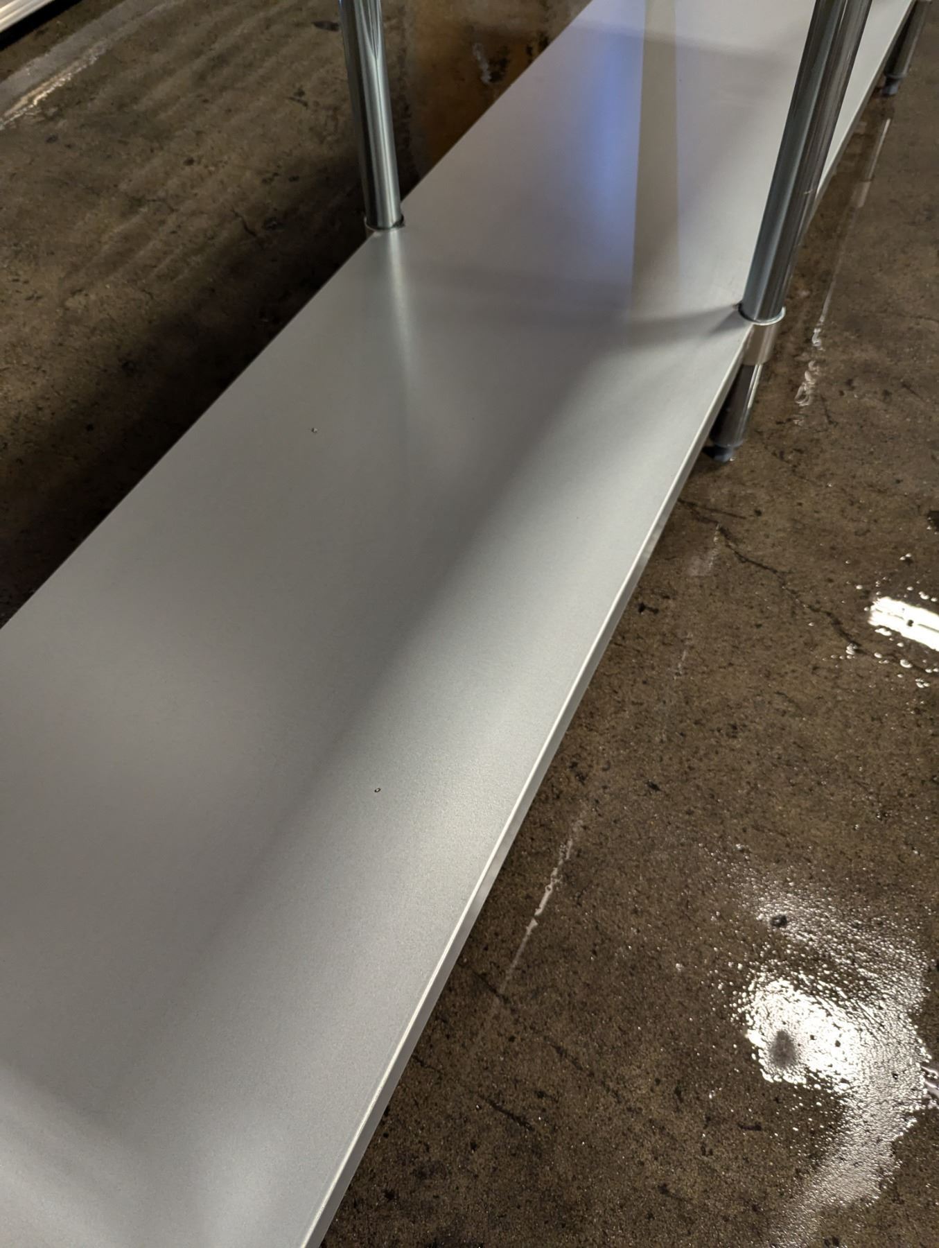 [New in Box,] 18 Gauge 430 Stainless Steel, Top Load Capacity: 1036lbs, Undershelf Capacity: 430lbs, Fully Adjustable Undershelf, Plastic Bullet Feet (34" Height Adjustable from 33.5" to 34.5",) Galvanized Legs
