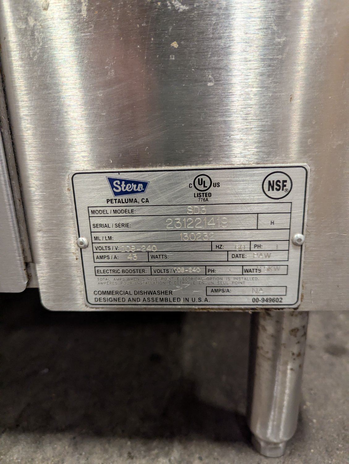 Lot 23 Stero SD3 Pass-Thru Dishwasher W/Dish Tables & Pre-Rinse Faucet