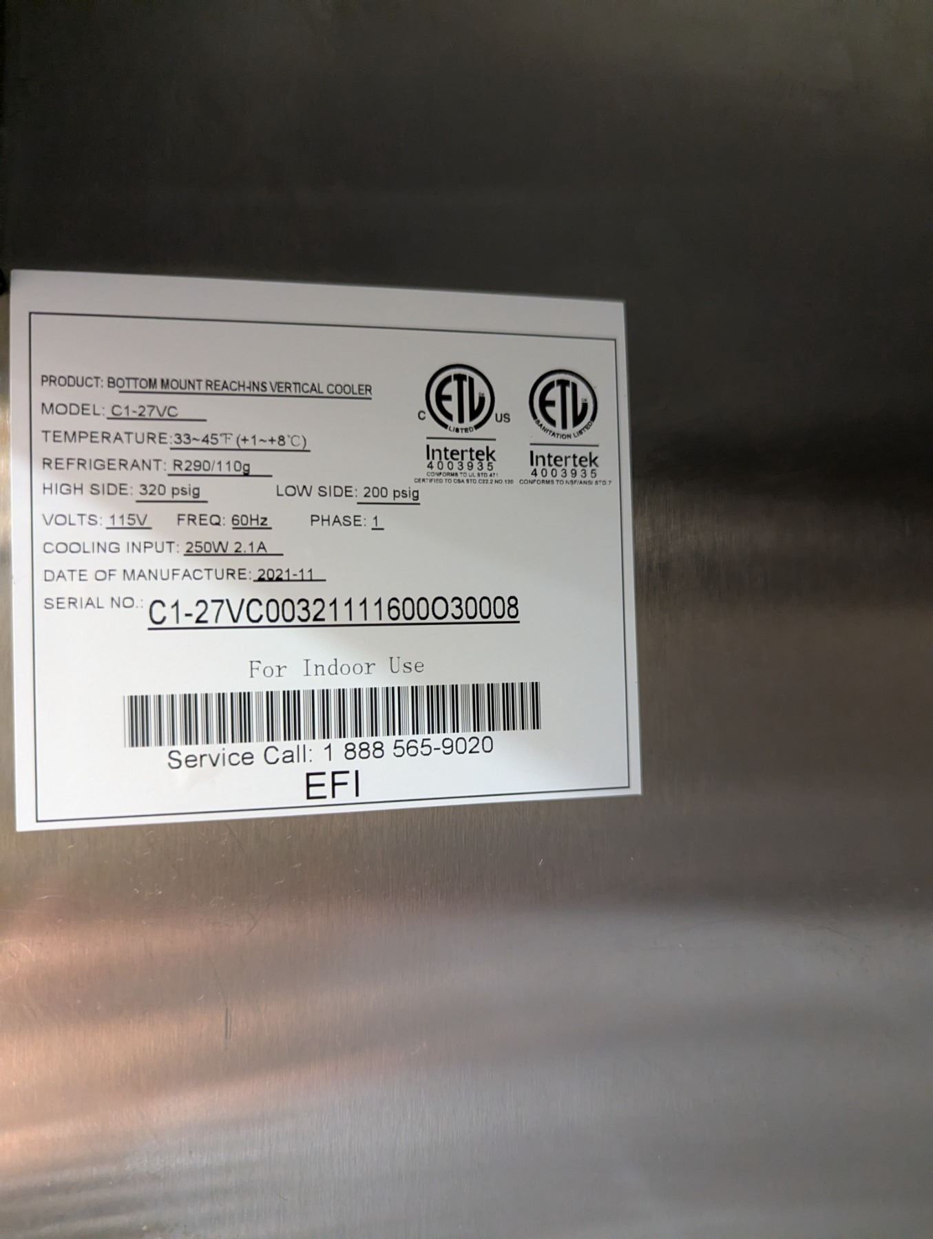 Lot 30 Efi C1-27VC 27" Single Door Stainless Cooler