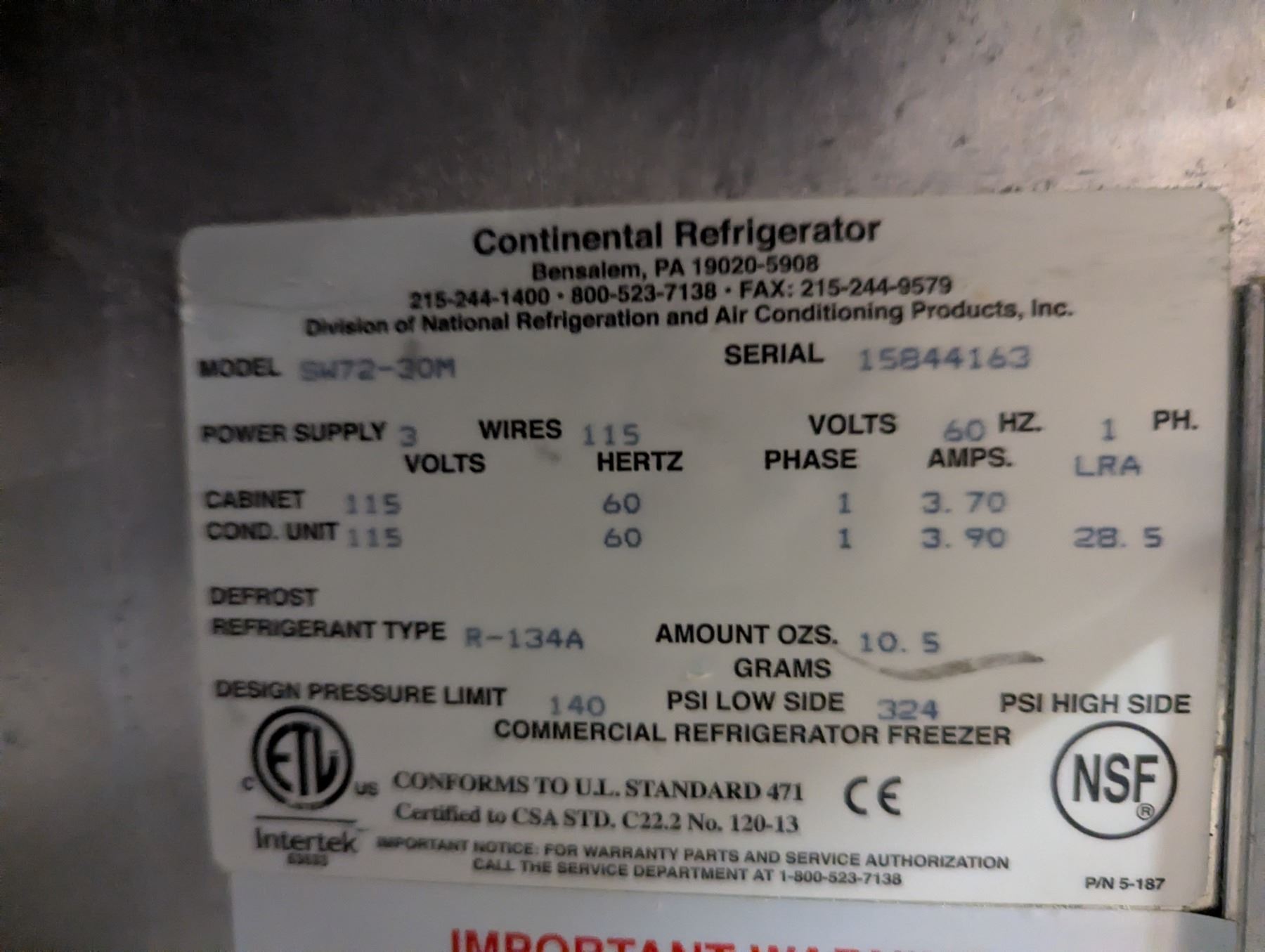 Lot 48 Continental SW72-30M 72" Refrigerated Sandwich/Salad Prep Table