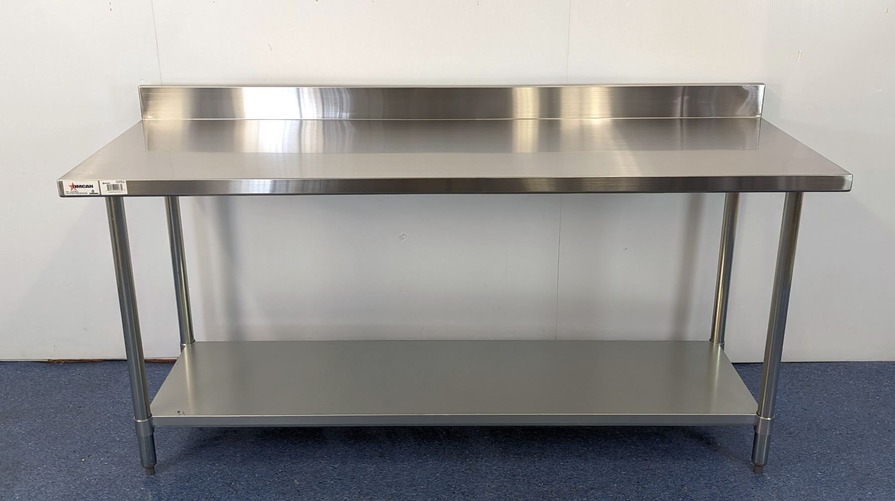 [New in Box,] 18 Gauge 430 Stainless Steel, Top Load Capacity: 705lbs, Fully Adjustable Undershelf, Plastic Bullet Feet (34" Height Adjustable from 33.5" to 34.5" + 4" Backsplash,) Galvanized Legs