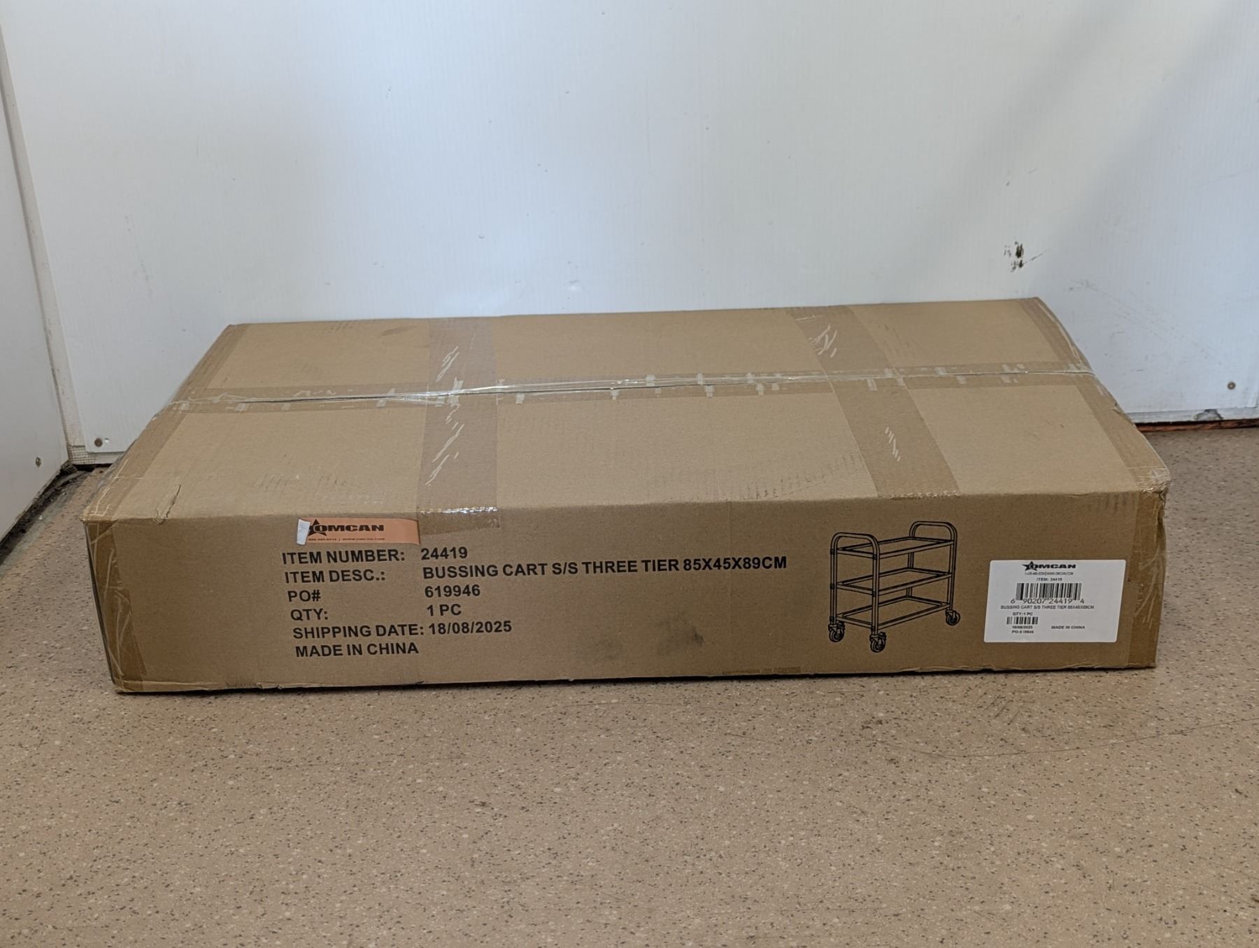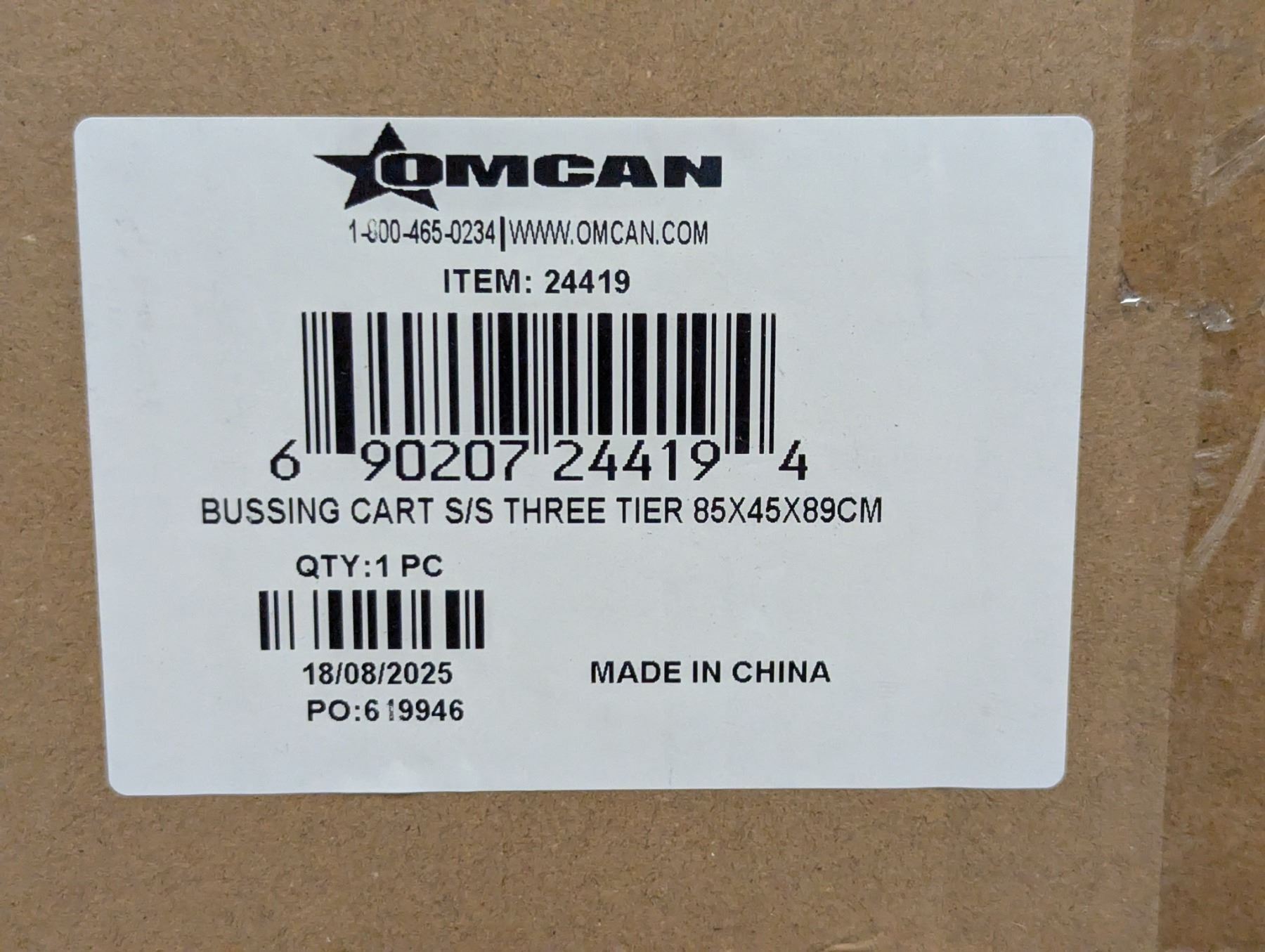 Lot 85 Stainless Bussing Cart, 31.5" x 17.6" Tray Size, Omcan 24419