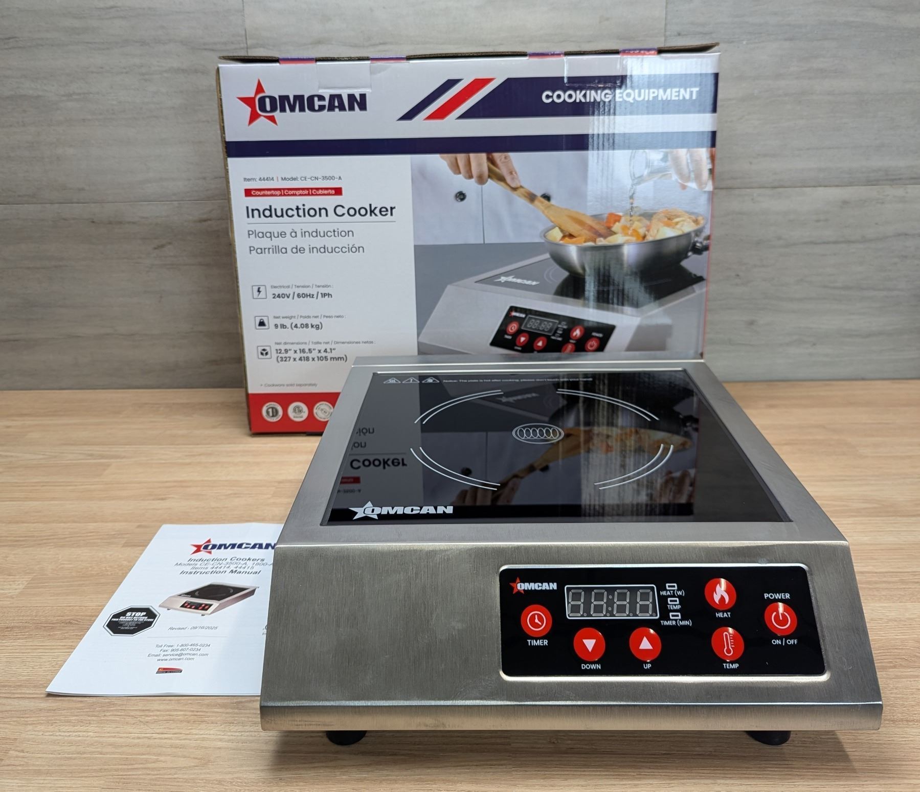 [New in Box,] Electrical: 240V/60Hz/1Ph, Power: 3500W, heavy-duty commercial rating