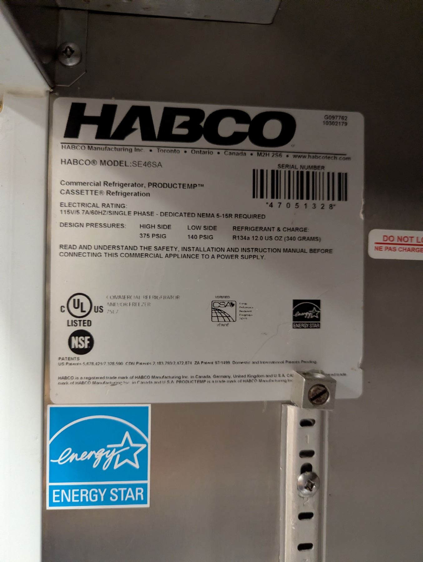 [Used, Tested/Working,] Serial# 47051328, 48" x 31" x 83", 115V/60Hz/1Ph