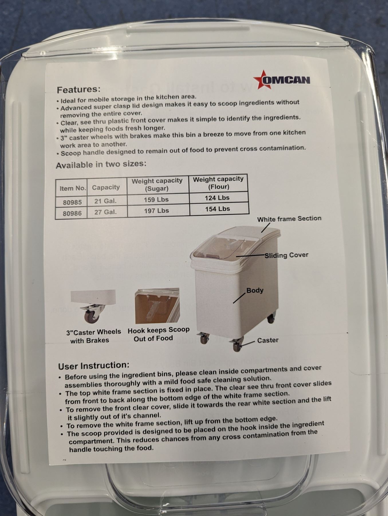 Lot 113 21 Gallon Ingredient Bin With Sliding Lid, Omcan 80985