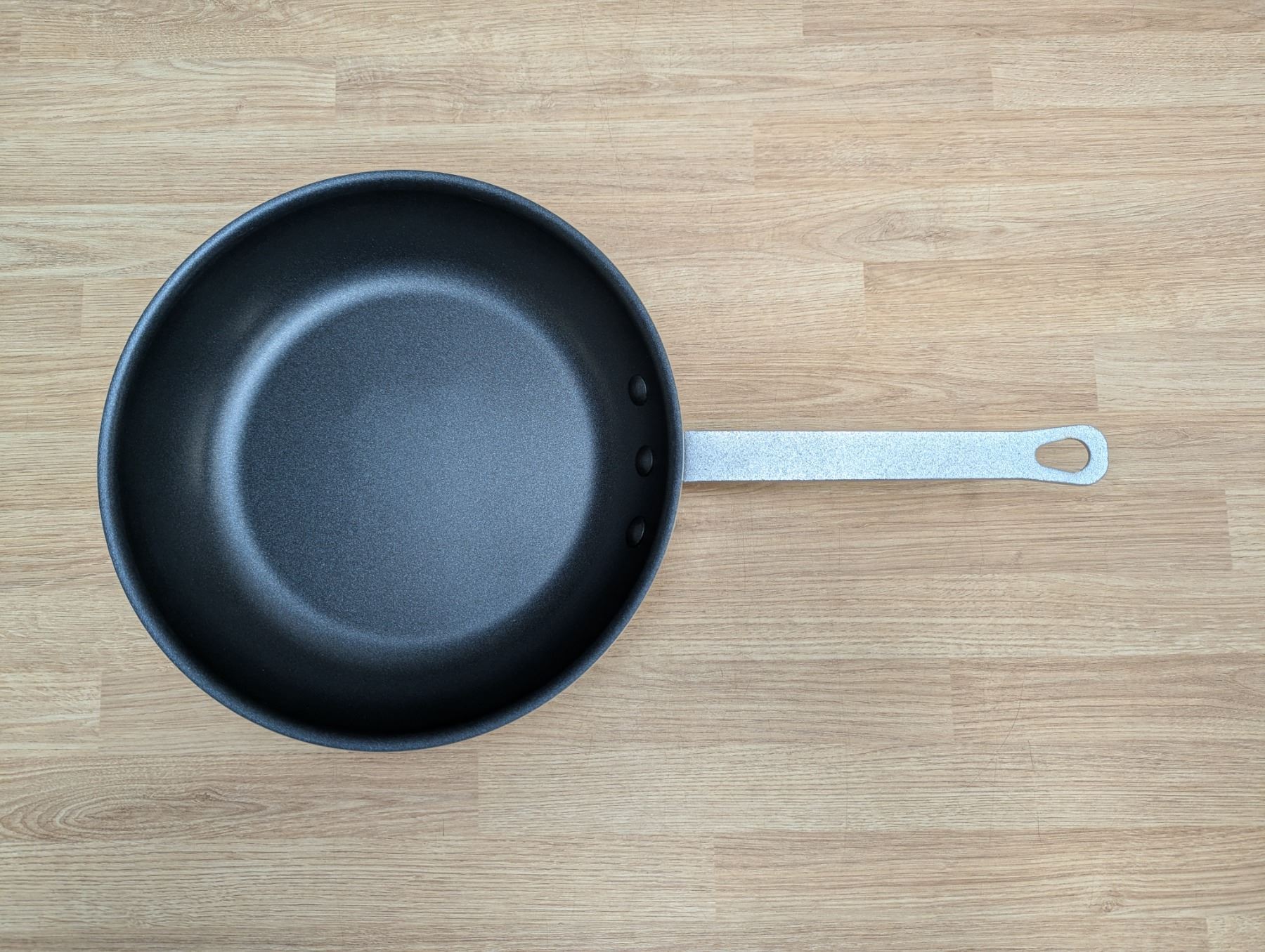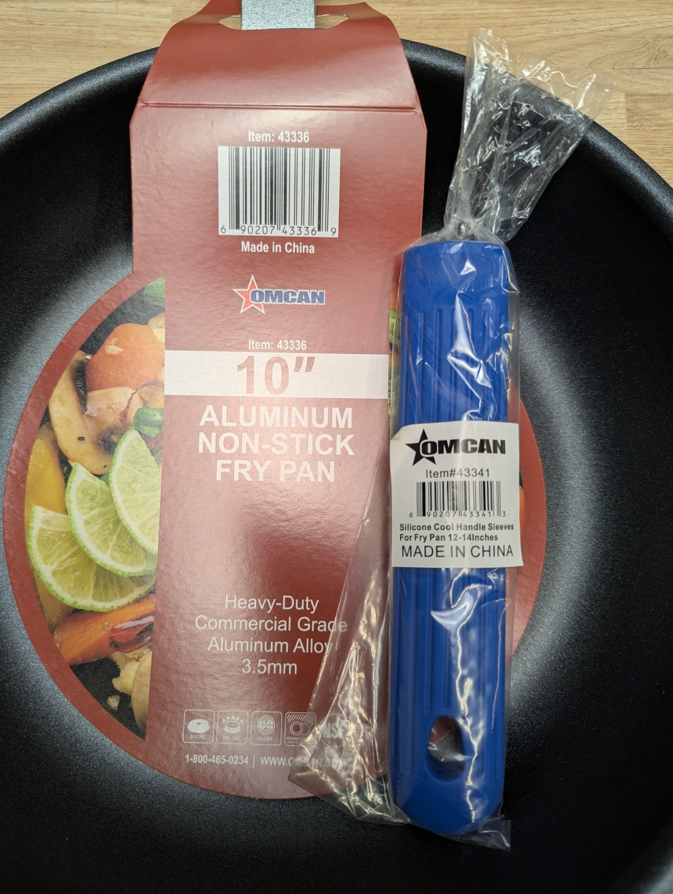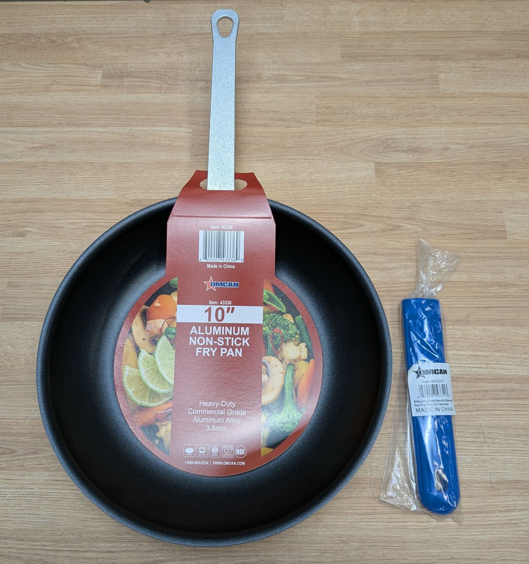 [New,] with 10" Silicone Cool Handle Sleeve (Omcan 43340,) Heavy-gauge aluminum, 3-layer Eclipse non-stick coating, riveted handle