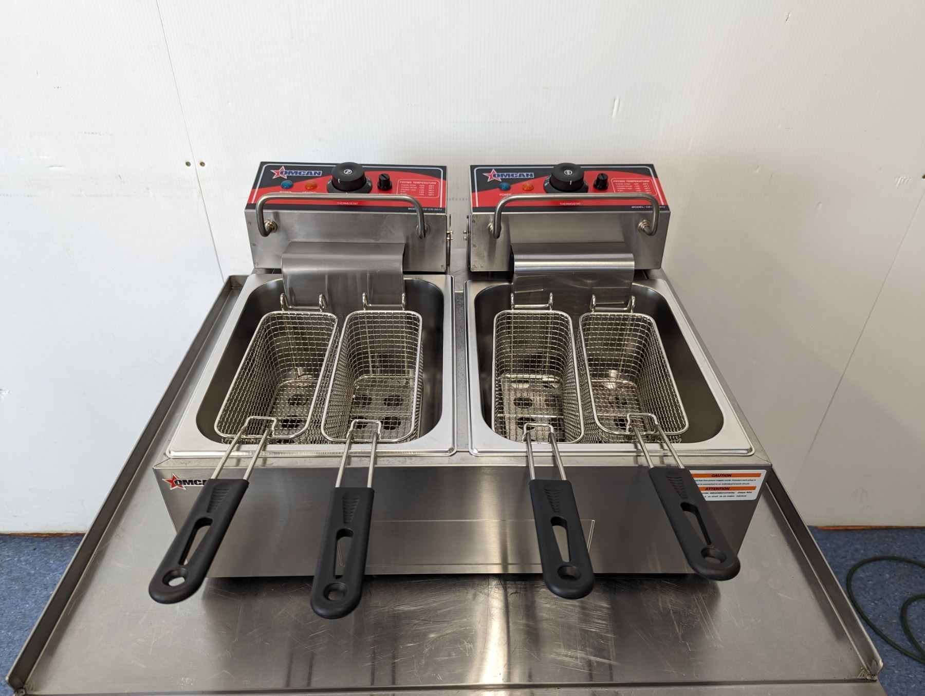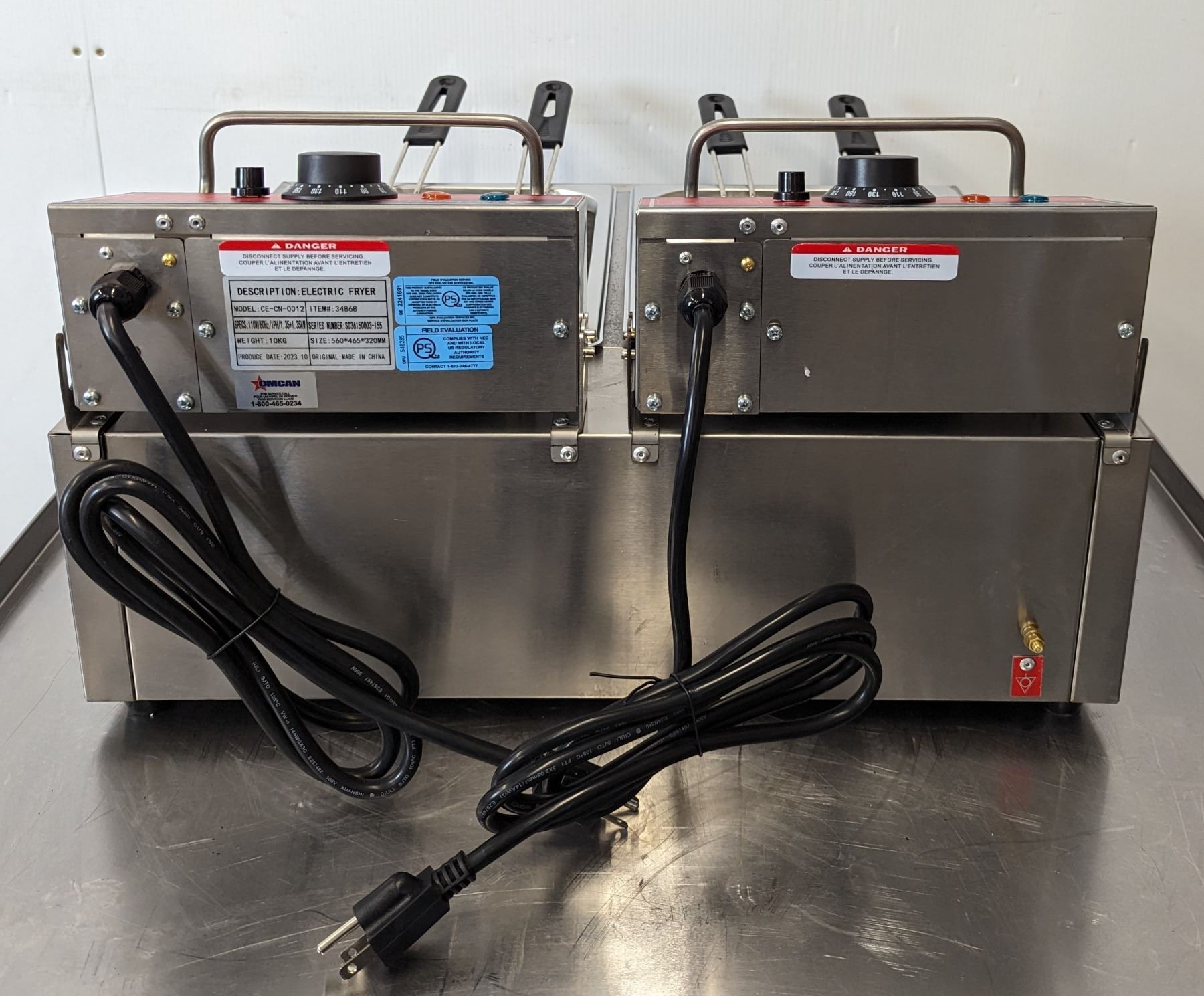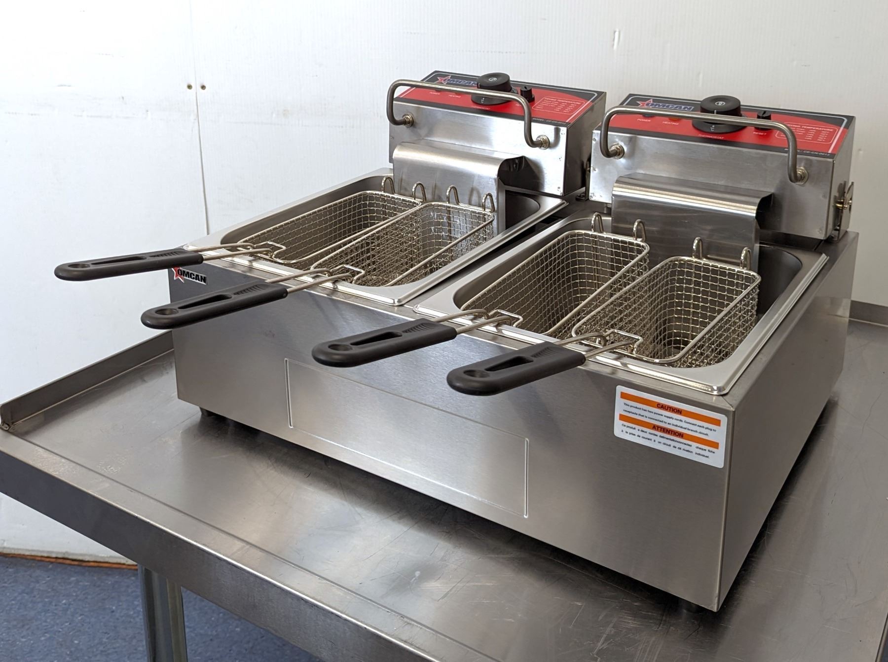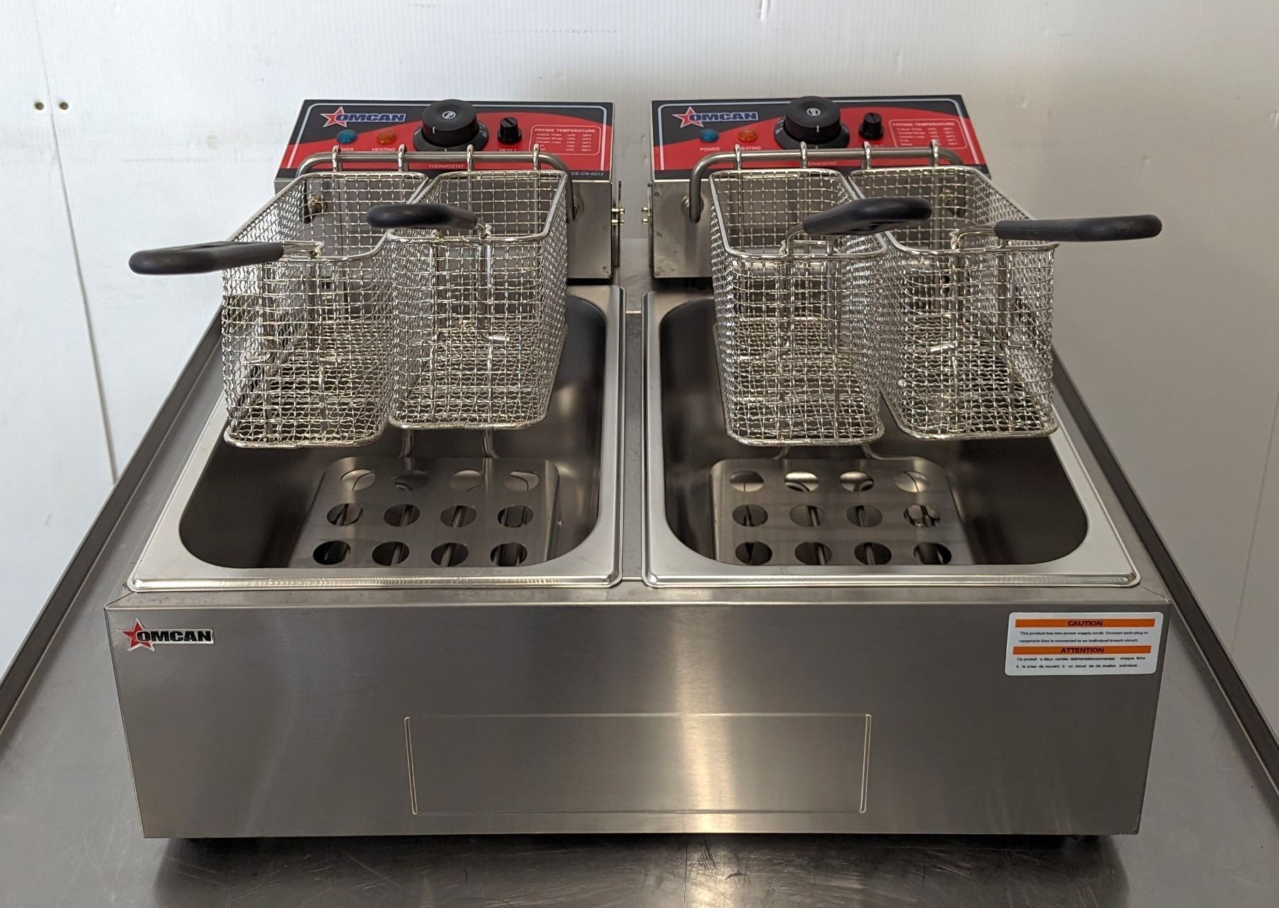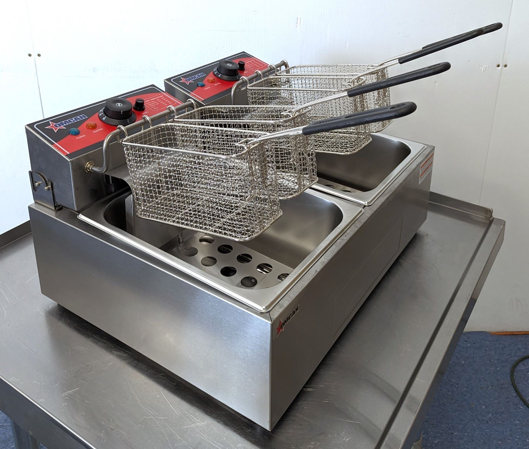 [New In Box,] Oil Capacity: 6L (x2), 4 Baskets, 50°-190°C/ 122°-374°F, 1,350 W (x2), 11.25 A (x2), 110V / 60Hz / 1Ph, Basket Dimensions (DWH): 8.25" x 3.5" x 4.25", Net Weight: 22 lb. / 10 kg