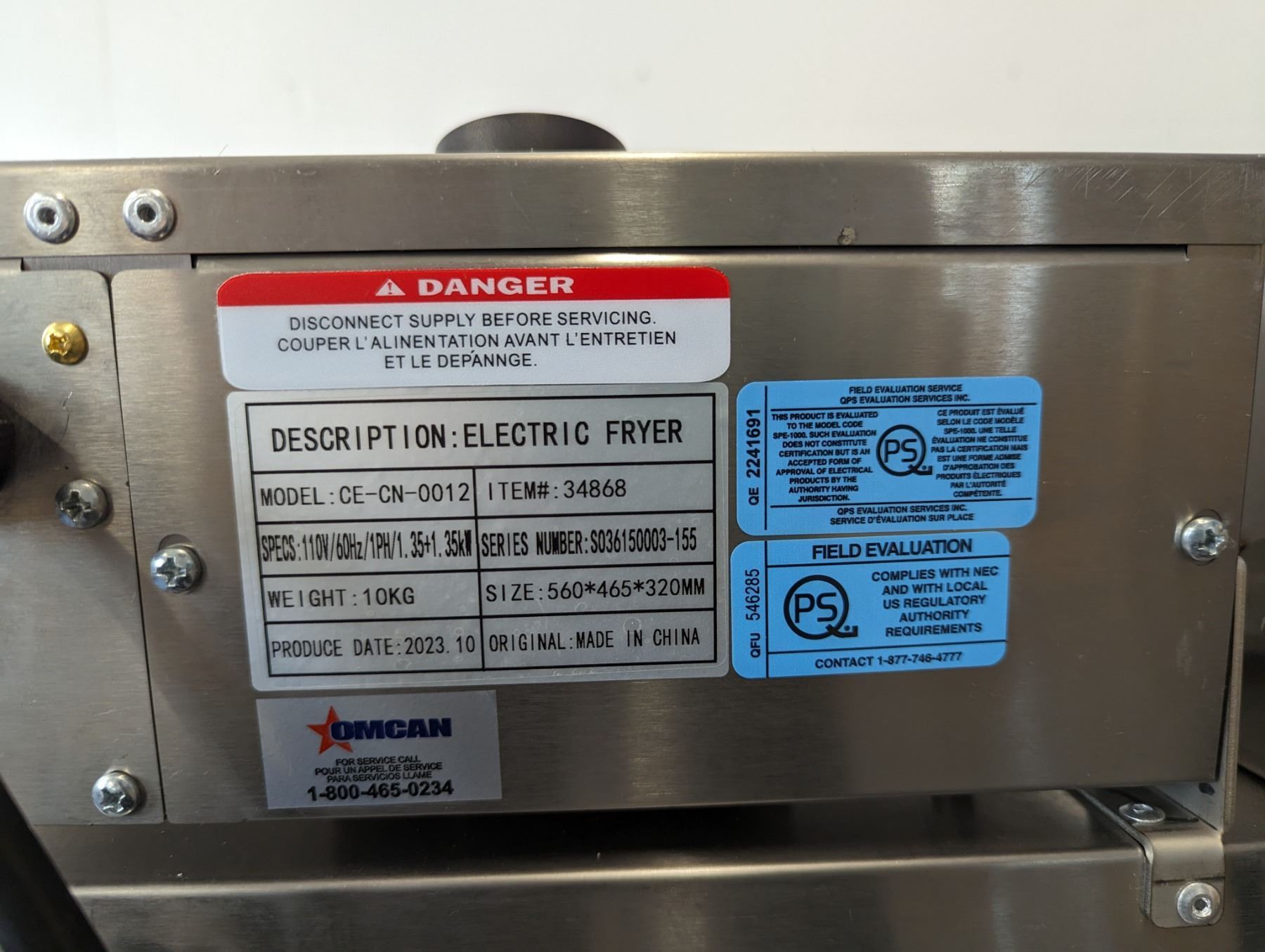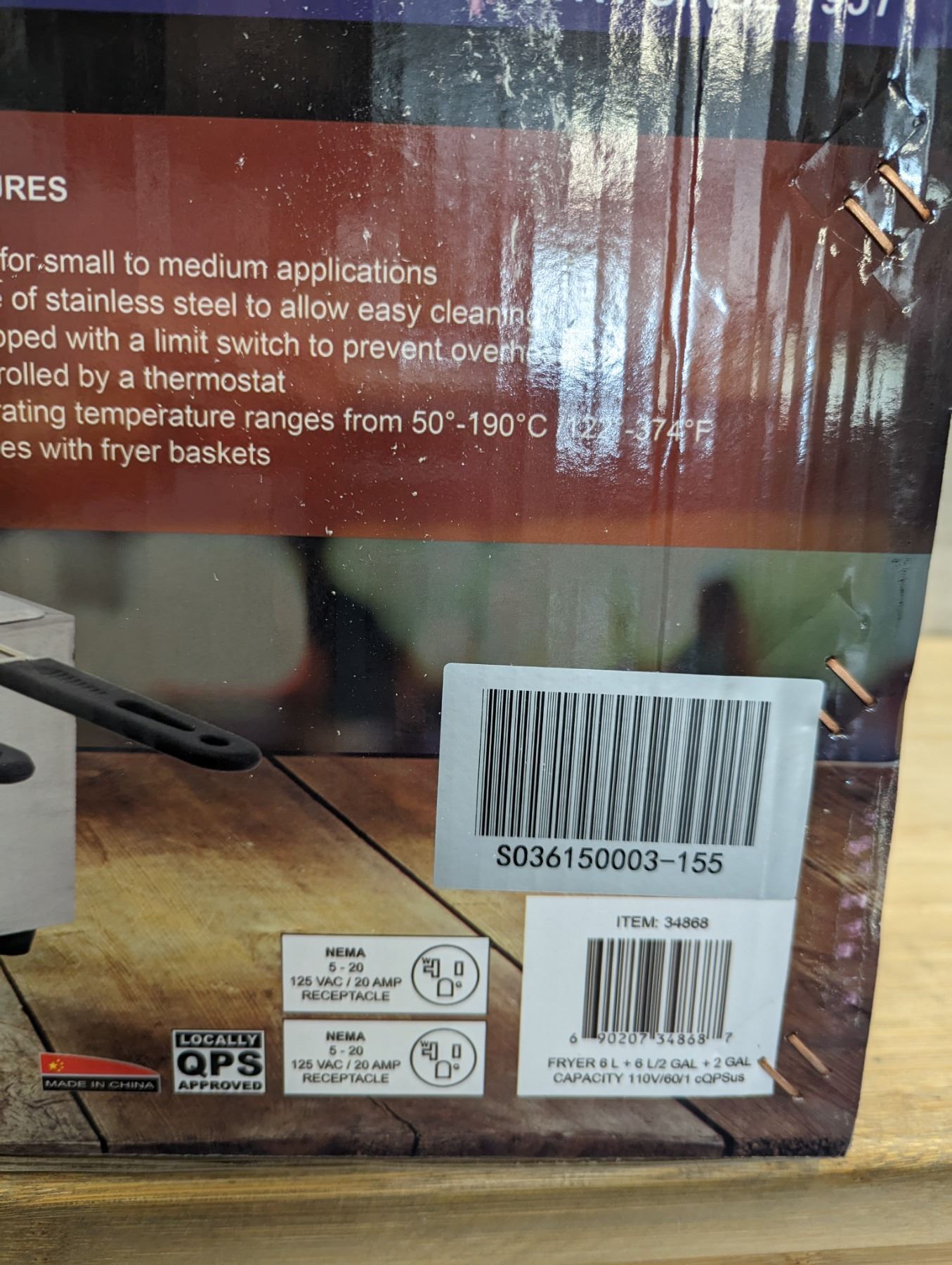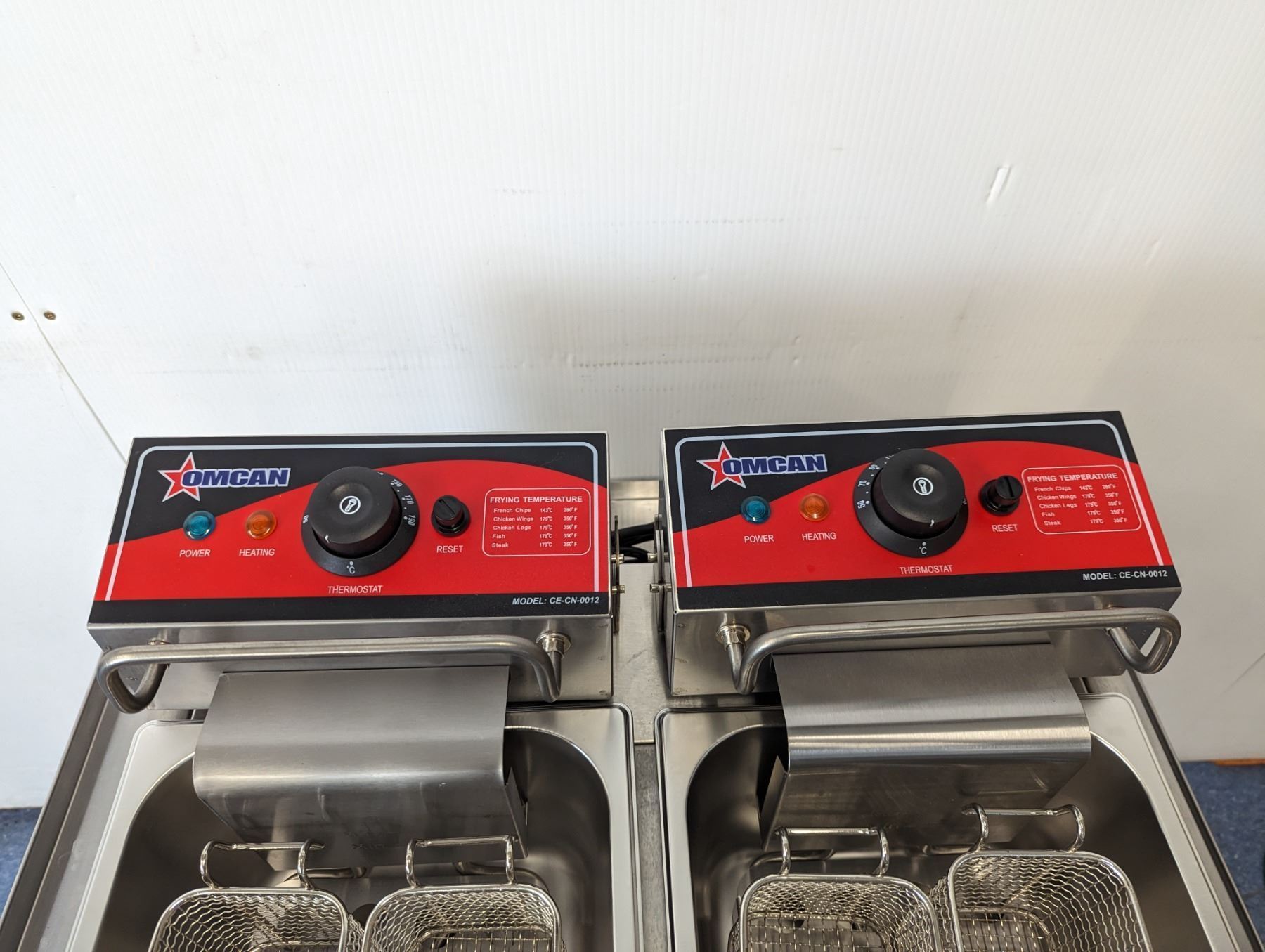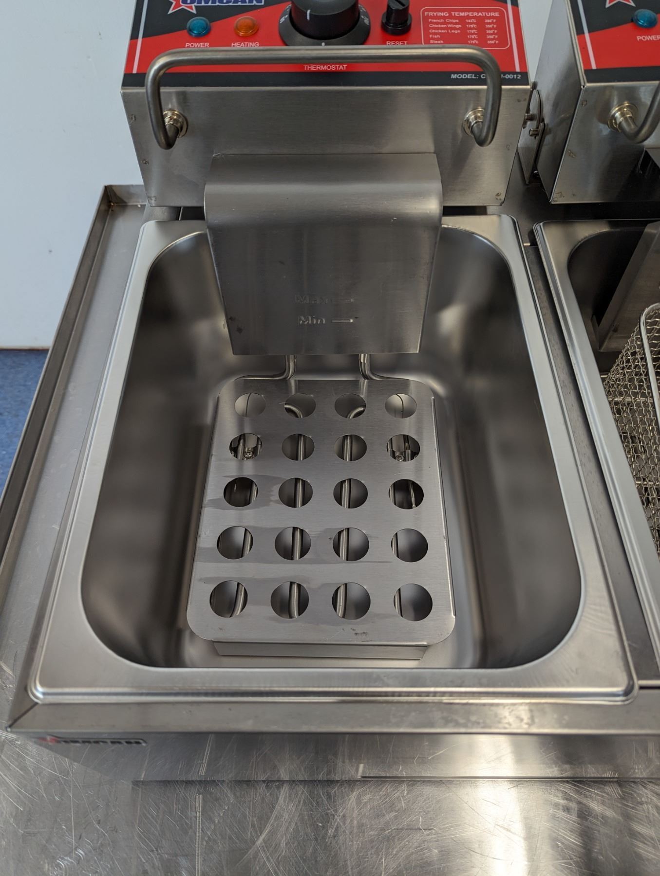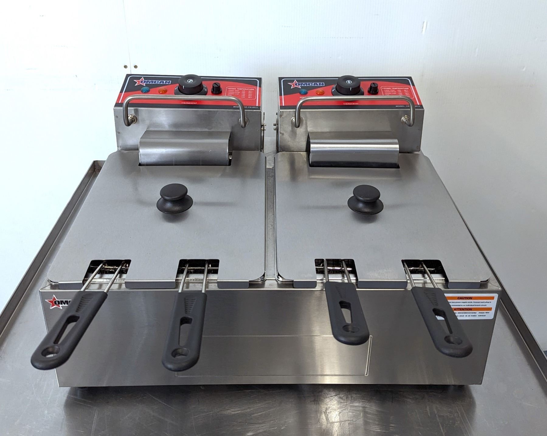 [New In Box,] Oil Capacity: 6L (x2), 4 Baskets, 50°-190°C/ 122°-374°F, 1,350 W (x2), 11.25 A (x2), 110V / 60Hz / 1Ph, Basket Dimensions (DWH): 8.25" x 3.5" x 4.25", Net Weight: 22 lb. / 10 kg