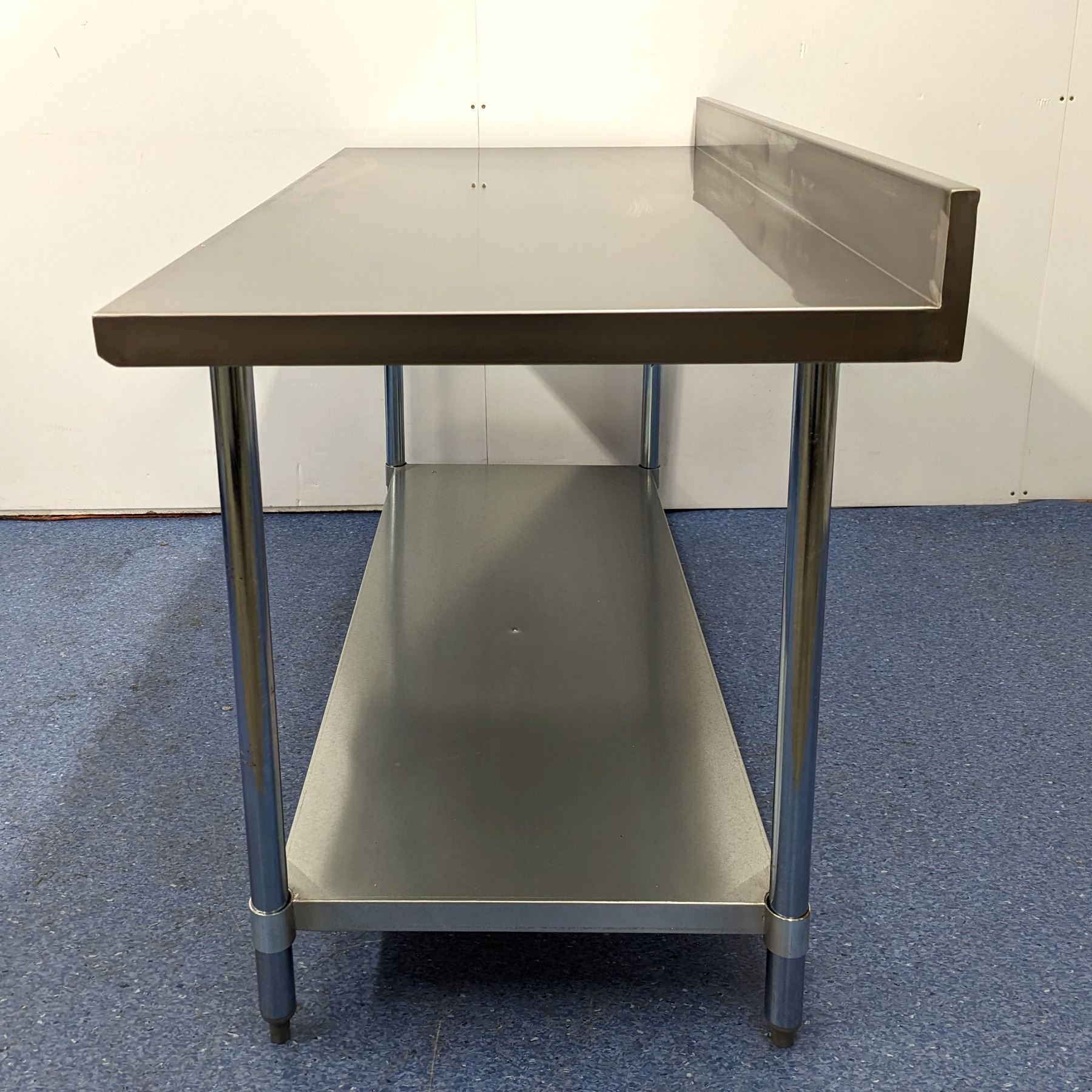 [New in Box,] 18 Gauge 430 Stainless Steel, Top Load Capacity: 679lbs, Fully Adjustable Undershelf, Plastic Bullet Feet (34" Height Adjustable from 33.5" to 34.5" + 4" Backsplash,) Galvanized Legs