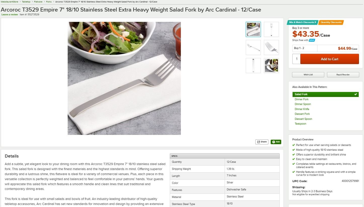 Lot 193 Arcoroc Empire 7pc Extra Heavy Weight Cutlery Set - Lot of 84pcs (12/ea)