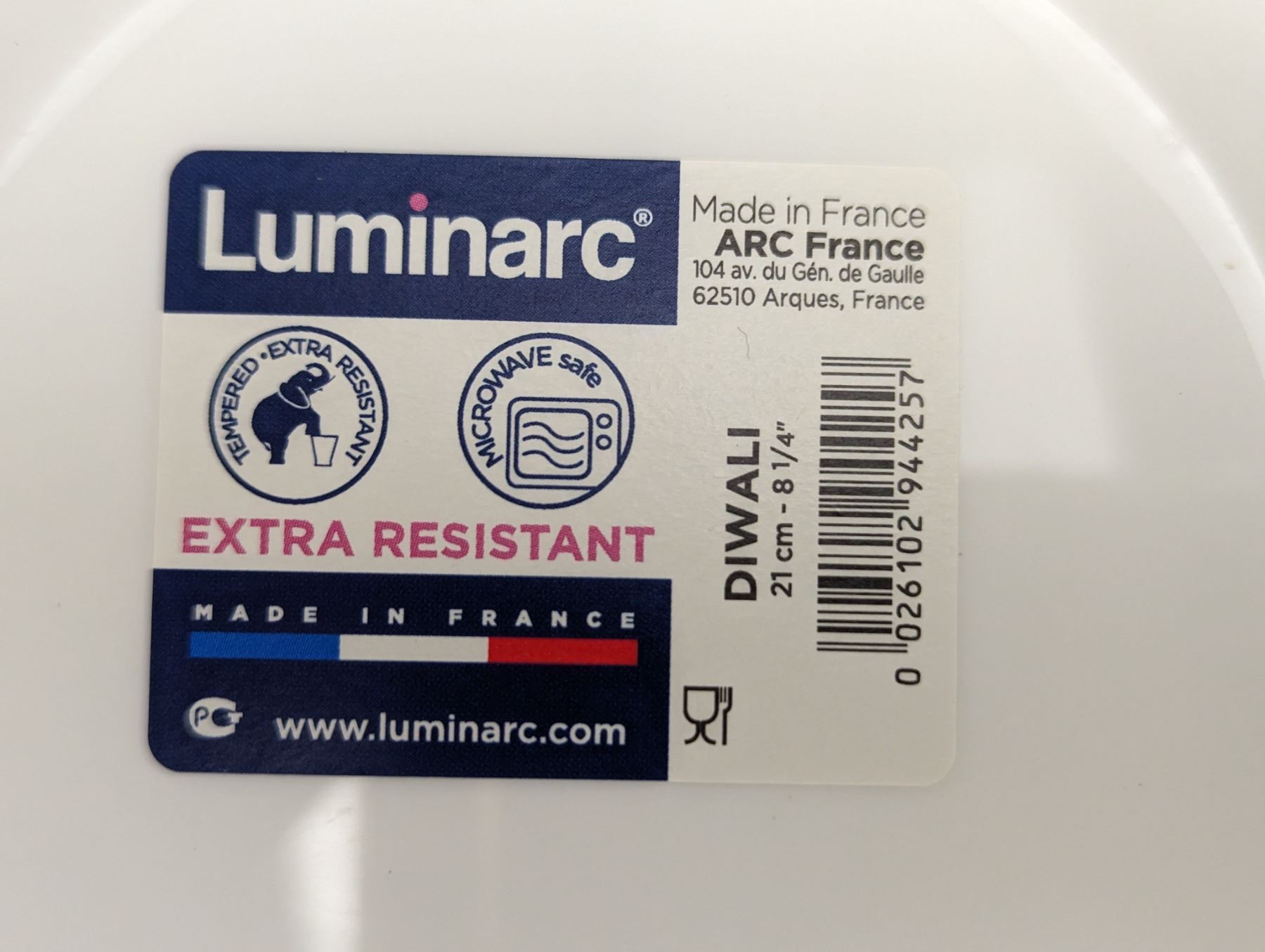 [New,] Made In France. Fully tempered, microwave safe glass.