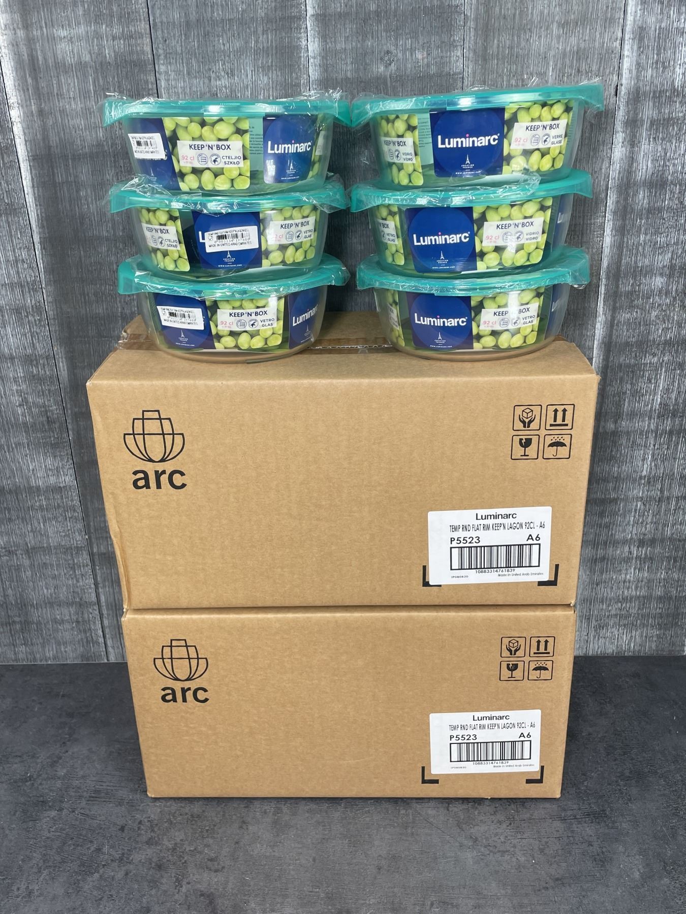 Lot 376 920ml Glass Round Keep N Boxes, Arcoroc P5523 - Lot of 18 (3 cases)