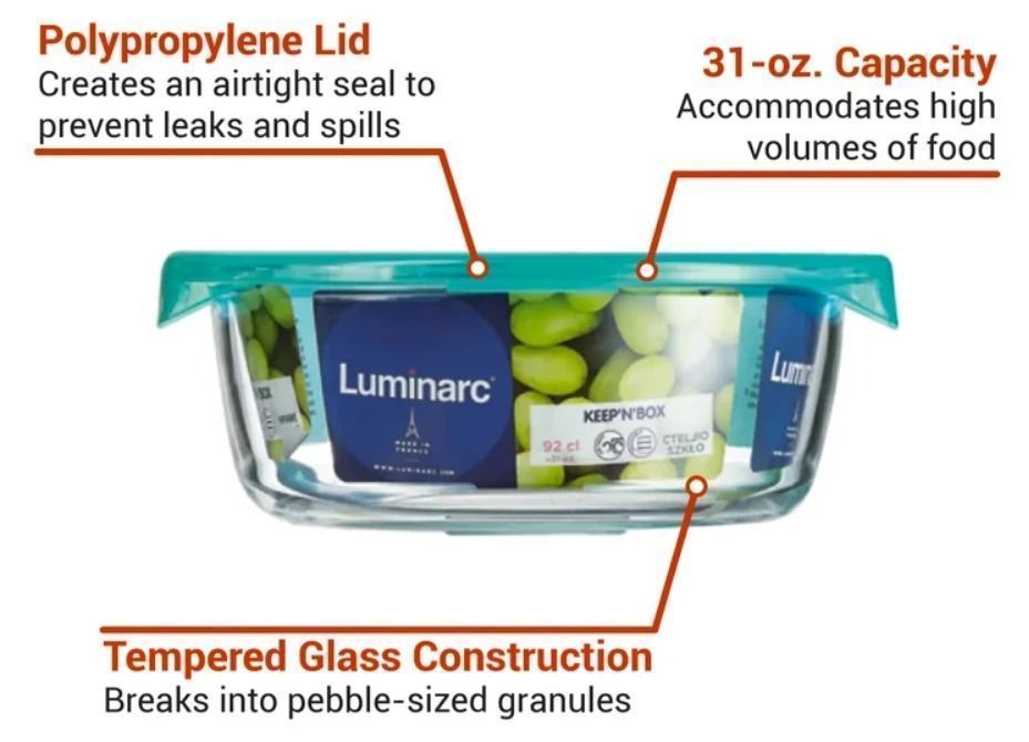 [New In Boxes,] 7" Diameter x 2.75" H, tempered glass body, 31.1oz, shock resistant, lids included, microwave/freezer/dishwasher safe