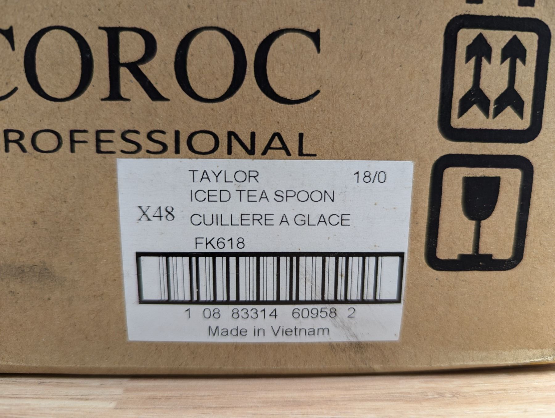 Lot 544 Taylor 7-3/8'' Iced Tea Spoons, Arcoroc FK618 - Lot of 48