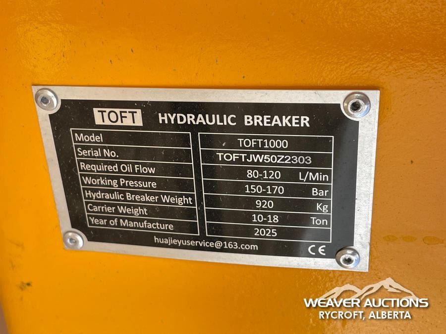 Lot 534A 2025 TOFT1000 HYDRAULIC EXCAVATOR HAMMER
