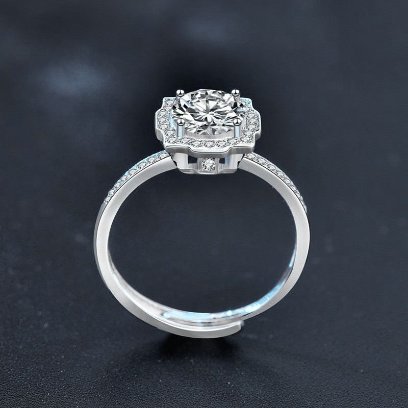 925S OPEN ADJUSTIBLE SIZE LUXURY RING WITH VVS D COLOR GRADE MOISSANITE STONE. COMES WITH ITS GRA CERTIFICATE. XJZ076