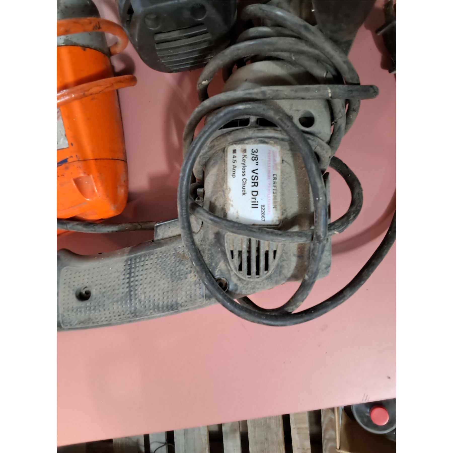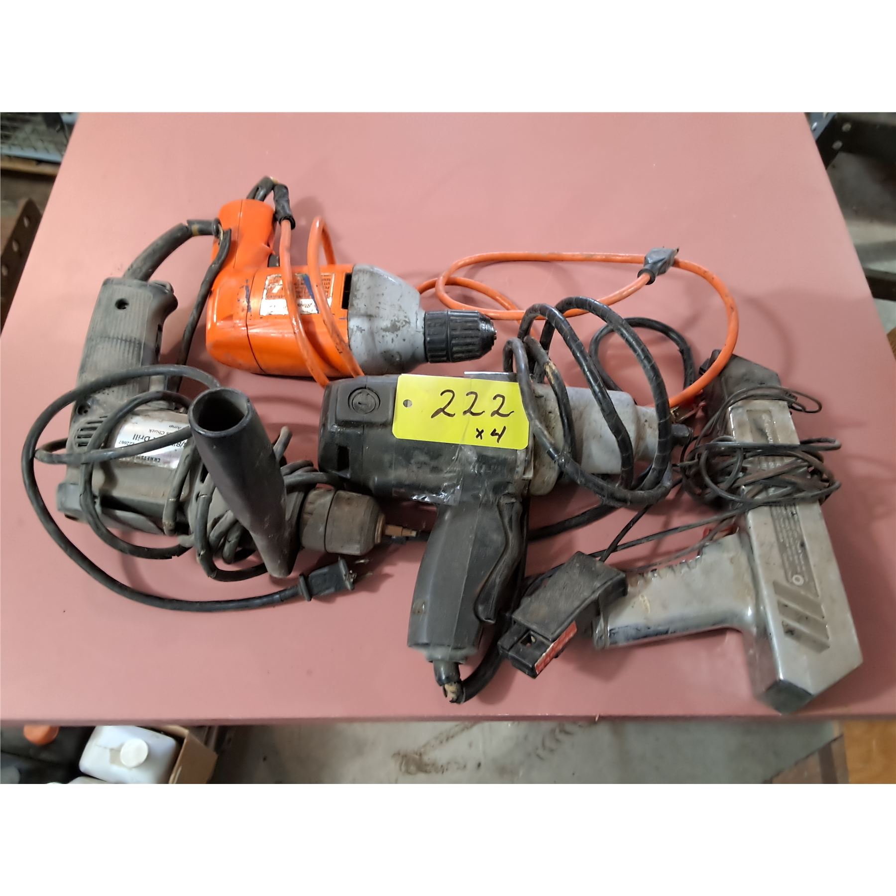 Lot 222 (2) 3/8" Corded Drills, 1/2" Corded Impact & Timing Light