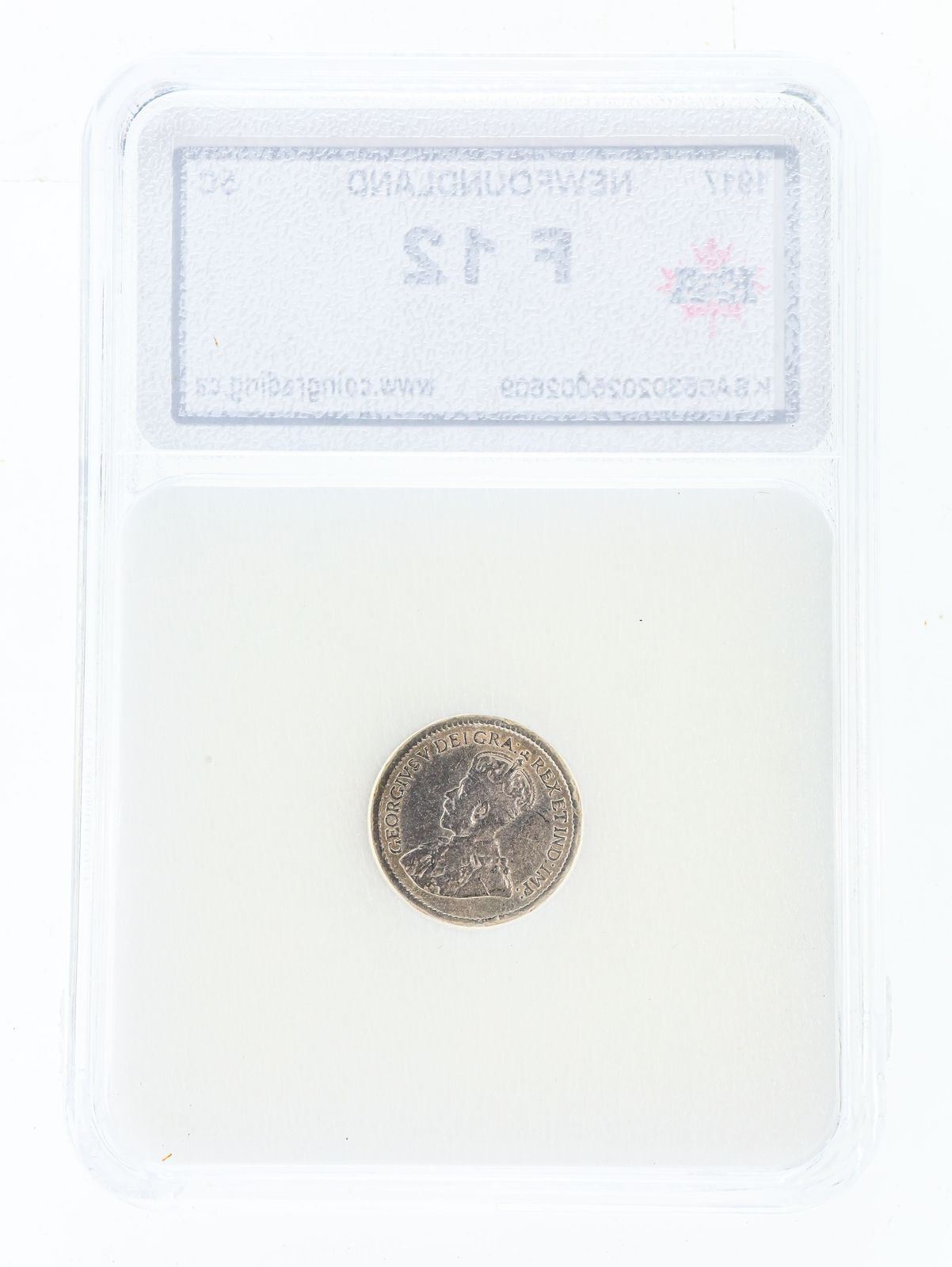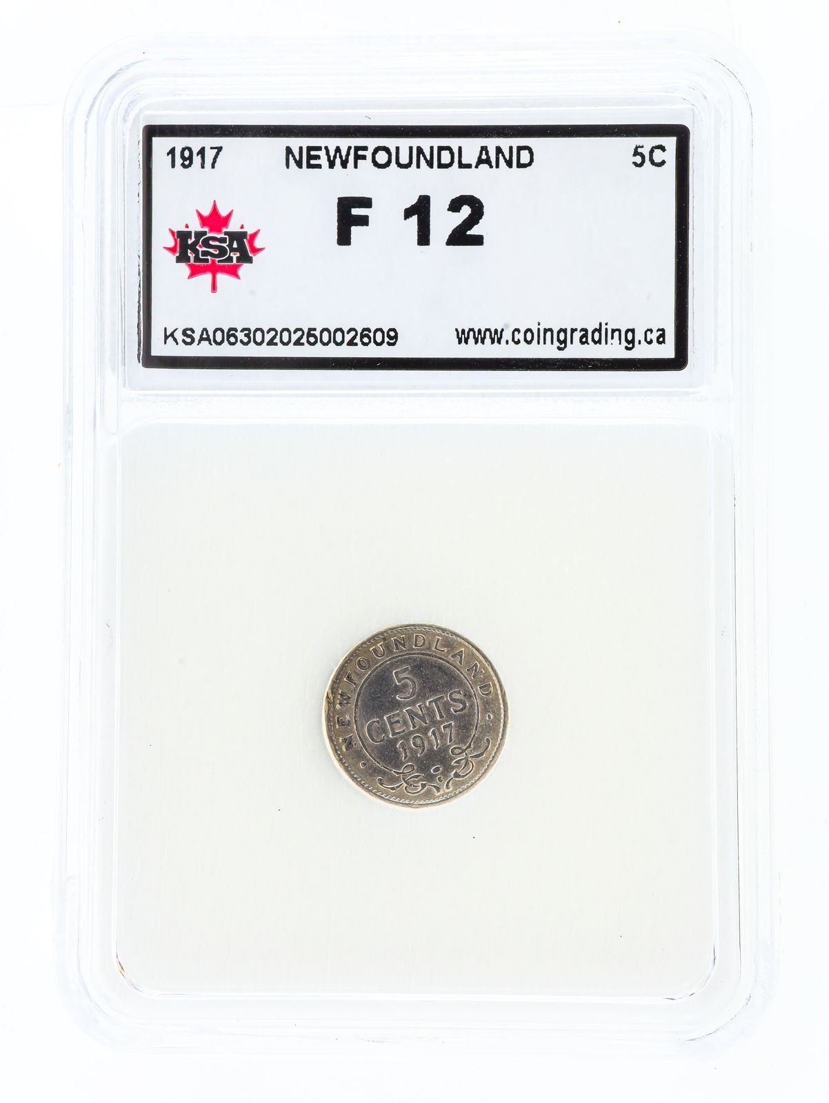 Lot 7 NFLD. 1917 Silver Five Cents F12 KSA Slab