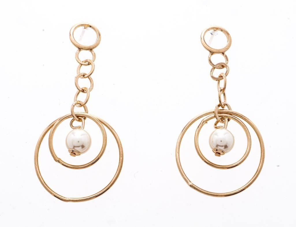 Lot 24 18kt Oro Laminado Drop Hoop w/ Pearl Earrings