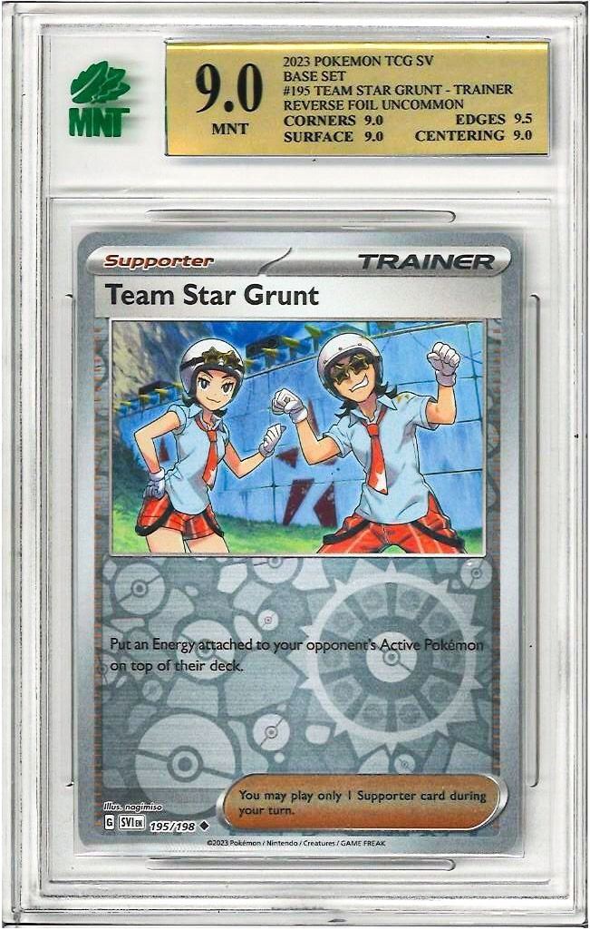 2023 Team Star Grunt - Trainer # 195 / 198 Pokemon Tcg Sv Base Set Card, Reverse Foil Uncommon With Grade MNT 9 . Graded by: MNT Ð PK8148