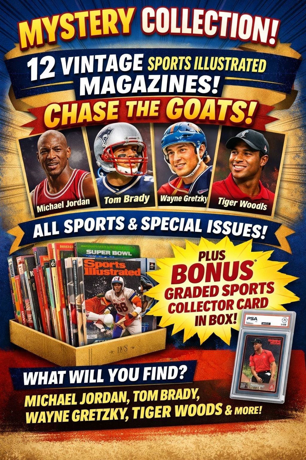 Step into the golden era of sports with this exclusive Mystery Collection featuring 12 Vintage Sports Illustrated Magazines, spanning iconic covers, special editions, and unforgettable moments across all major sports. Each box is a curated surprise, offering collectors and enthusiasts the thrill of discovery with every reveal.