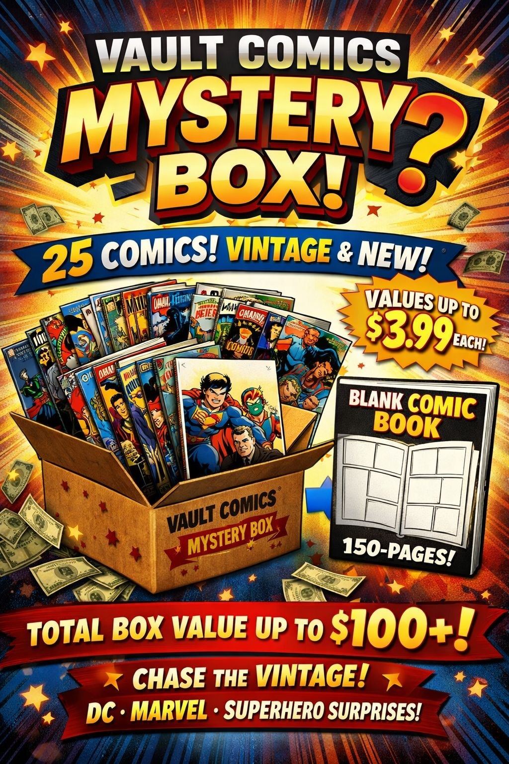 Step into the world of comic collecting with this exciting Vault Comics Mystery Box, packed with an incredible mix of 25 comic books spanning vintage classics and modern releases. Every box delivers a thrilling surprise assortment that may include titles from legendary publishers such as DC, Marvel, Superman series issues, and other fan-favorite characters.
