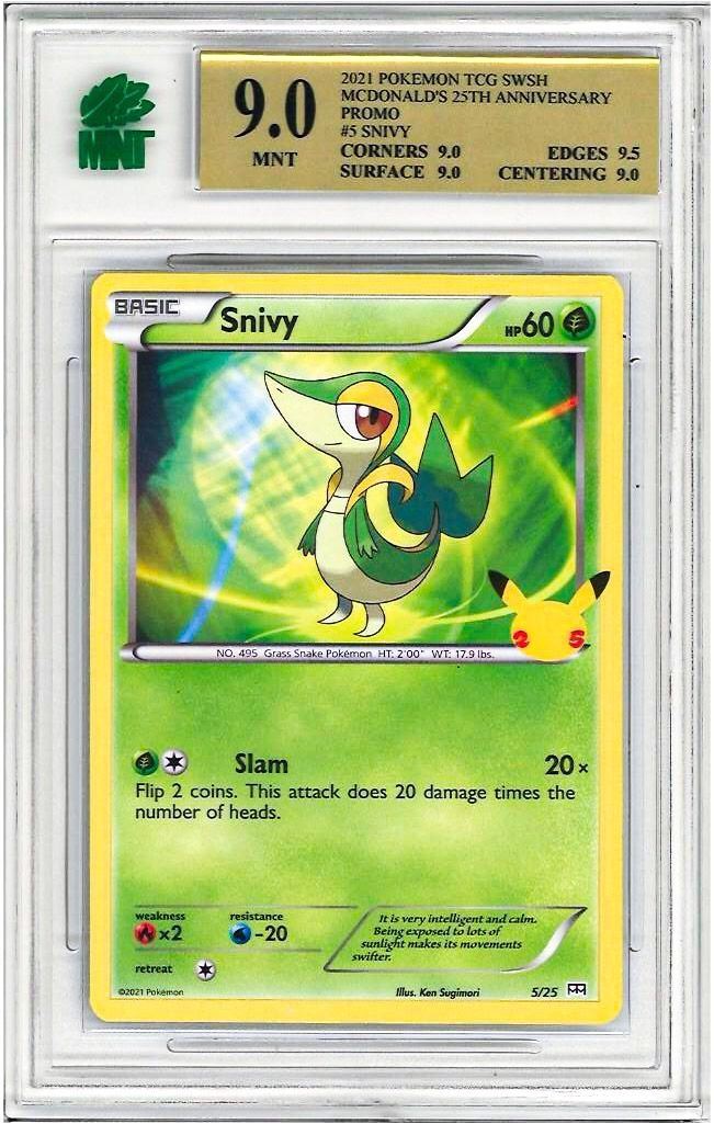 2021 Snivy # 5 / 25 Pokemon Tcg Swsh Mcdonald'S 25Th Anniversary Promo Card, With Grade MNT 9 . Graded by: MNT Ð PK8102