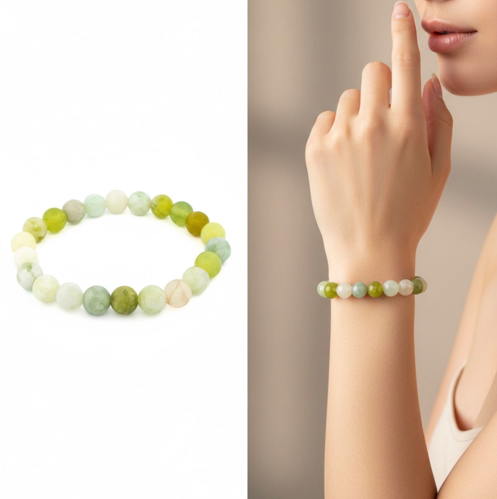 Lot 127 Natural Green Jade 8mm Bead Flex Bracelet