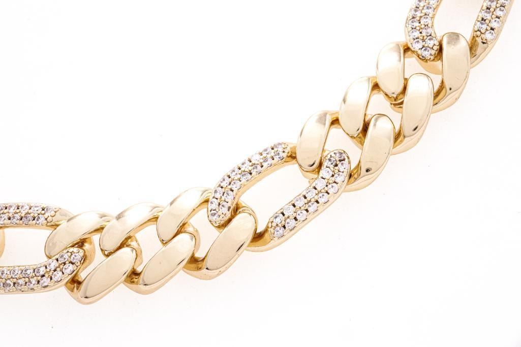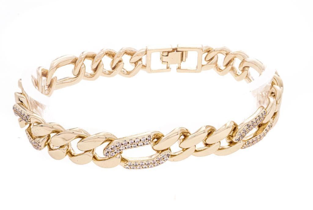 Lot 140 18kt BGO Figaro Link Bracelet w/ Pave CZ Gemstones