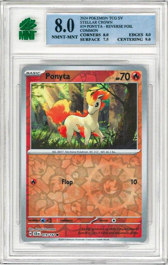 2024 Ponyta # 19 / 142 Pokemon Tcg Sv Stellar Crown Card, Reverse Foil Common With Grade NMNT-MNT 8 . Graded by: MNT Ð PK8068