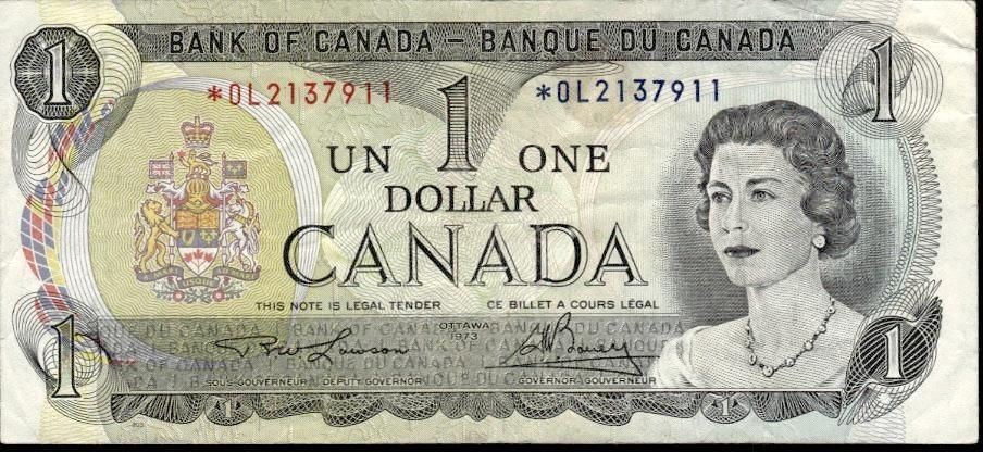 Lot 196 Bank of Canada 1973 One Dollar (*) Replacement (OL