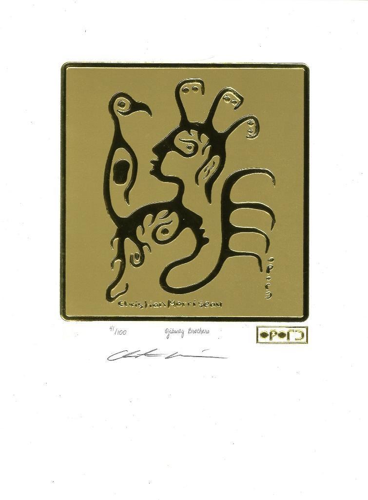 Christian Morrisseau (1969 - 2022) - The Elements - Limited Edition 24kt Gold Leaf "Ojibway Brothers" 12 x 9" UF, Cree Sybillac Signature in Plate Raised 24kt Gold Leaf & Hand Signed. Ð 10589