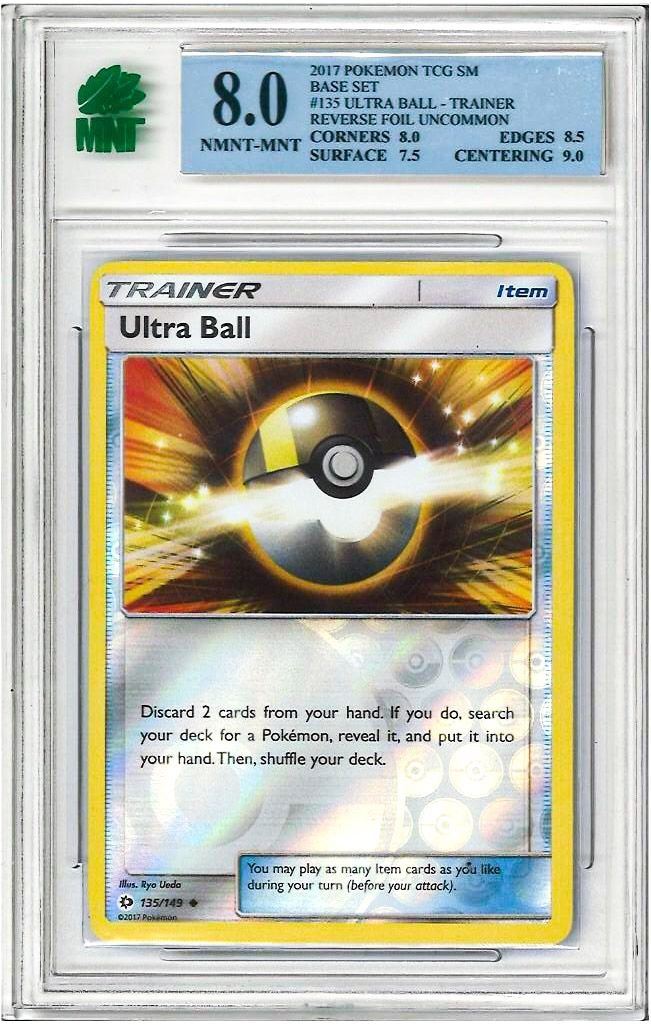 2017 Ultra Ball - Trainer # 135 / 149 Pokemon Tcg Sm Base Set Card, Reverse Foil Uncommon With Grade NMNT-MNT 8 . Graded by: MNT Ð PK8086