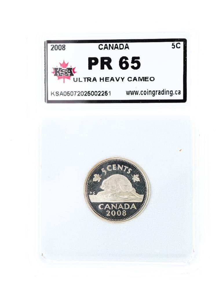 Canada 2008 Five Cents Ultra Heavy Cameo PR65 KSA Slab Ð COIN-436