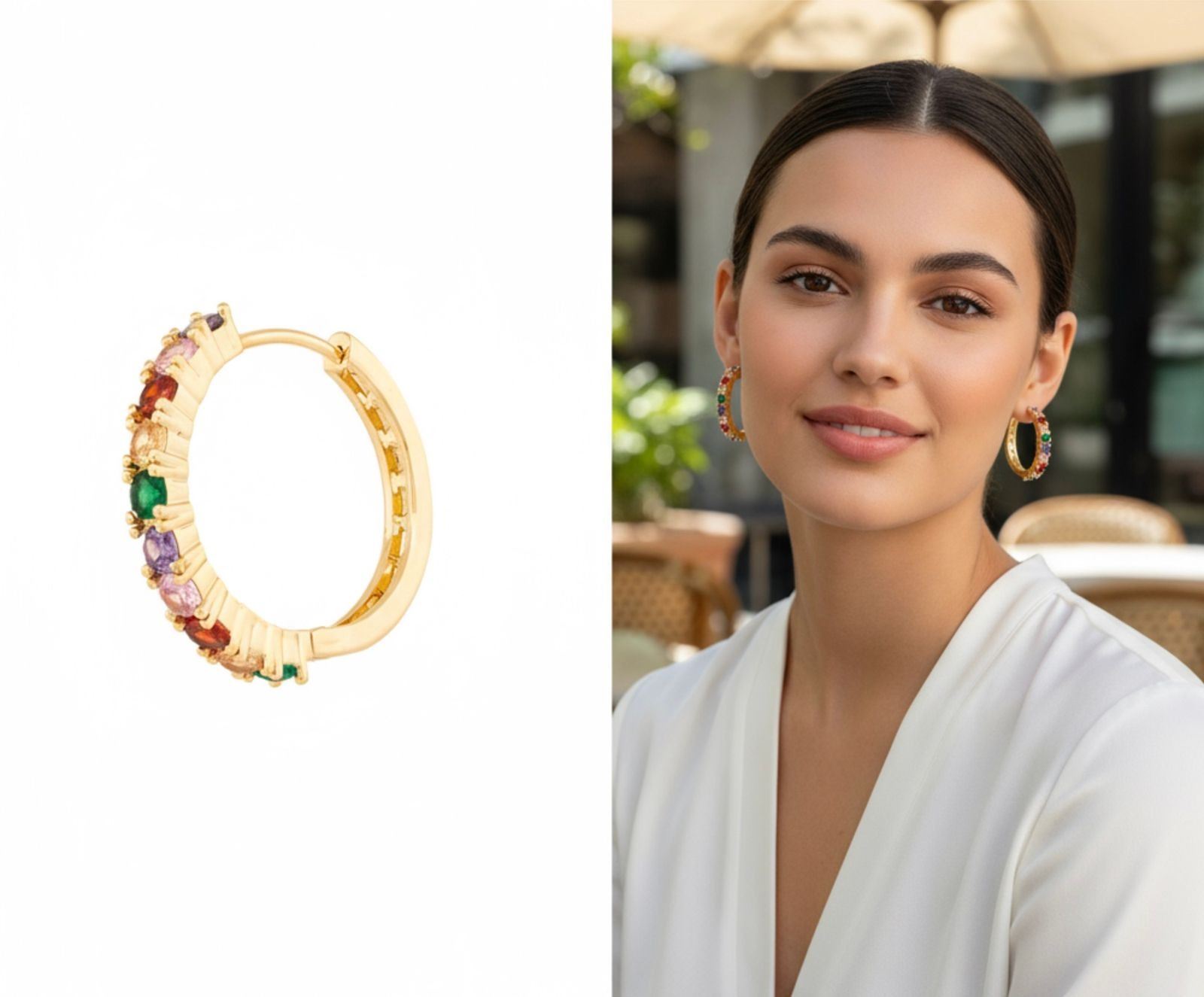 18kt Oro Laminado Multi Gemstone Hoop Earrings Ð 1456