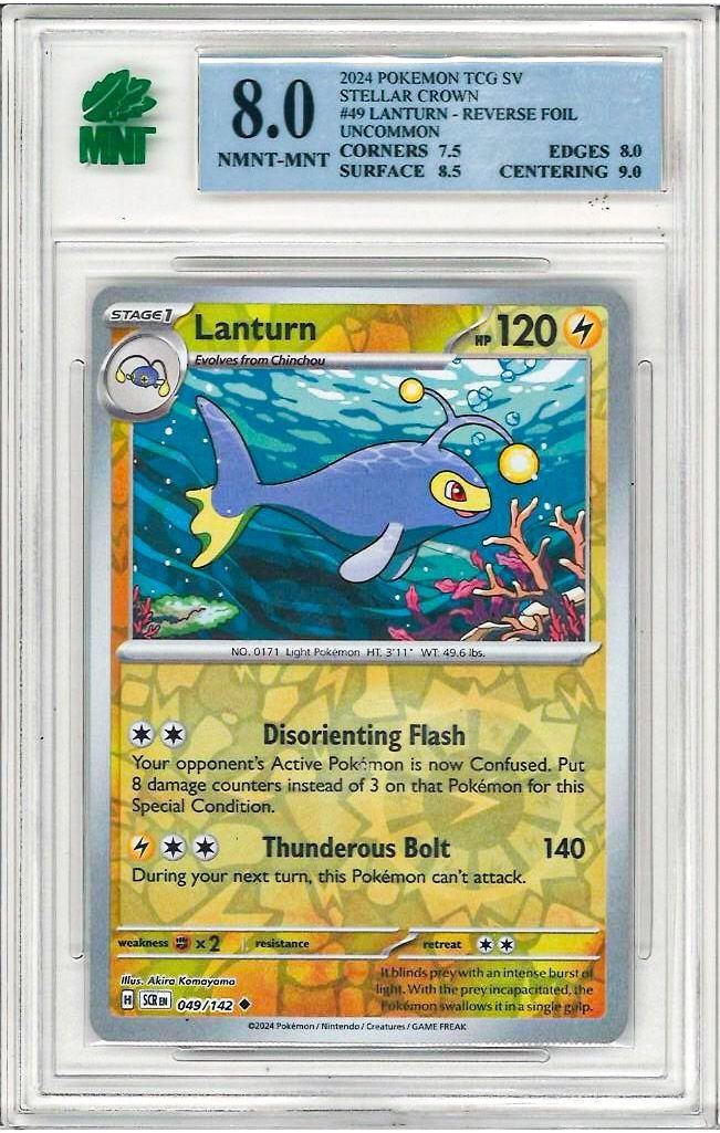 2024 Lanturn # 49 / 142 Pokemon Tcg Sv Stellar Crown Card, Reverse Foil Uncommon With Grade NMNT-MNT 8 . Graded by: MNT Ð PK8047