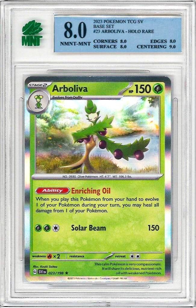 2023 Arboliva # 23 / 198 Pokemon Tcg Sv Base Set Card, Holo Rare With Grade NMNT-MNT 8 . Graded by: MNT Ð PK8041