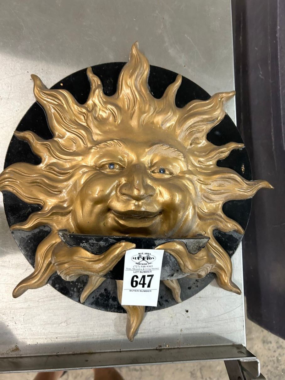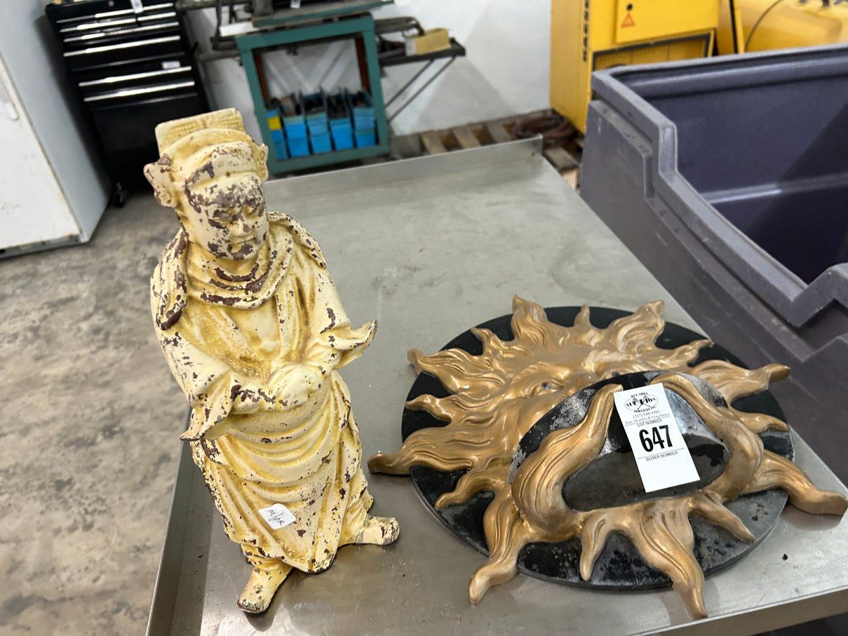 Lot 647 Cast Oriental Figurine, Sunburst Cast Sconce