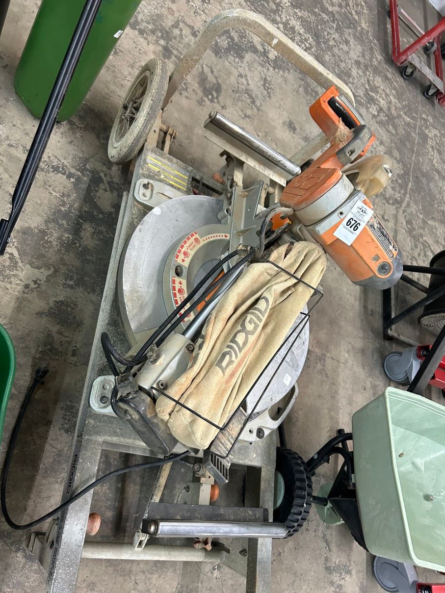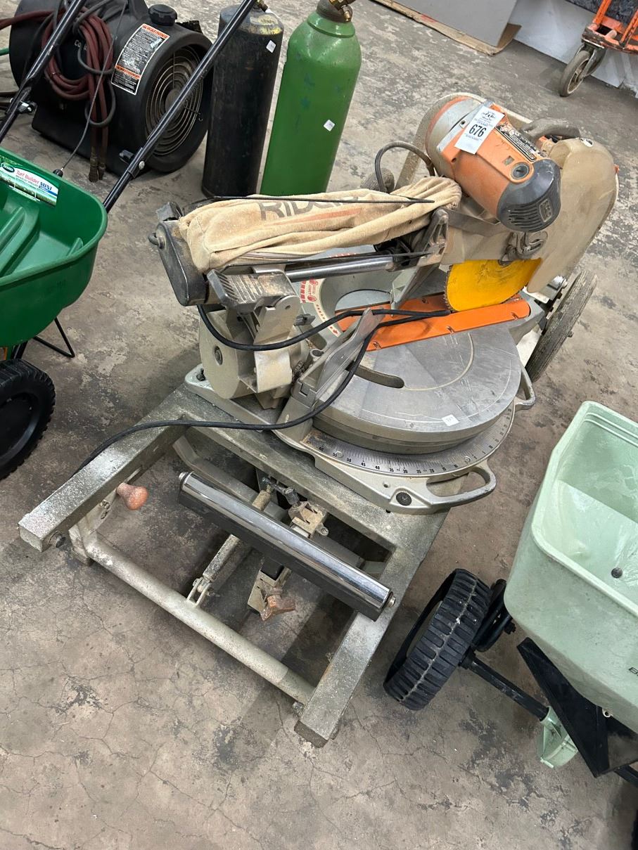 Lot 676 Ridgid Electric Sliding Miter Saw w/Sawbuck Dolly