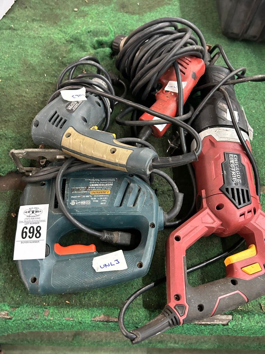 Lot 698 Chicago Electric Drills, Sawzall, Jigsaw