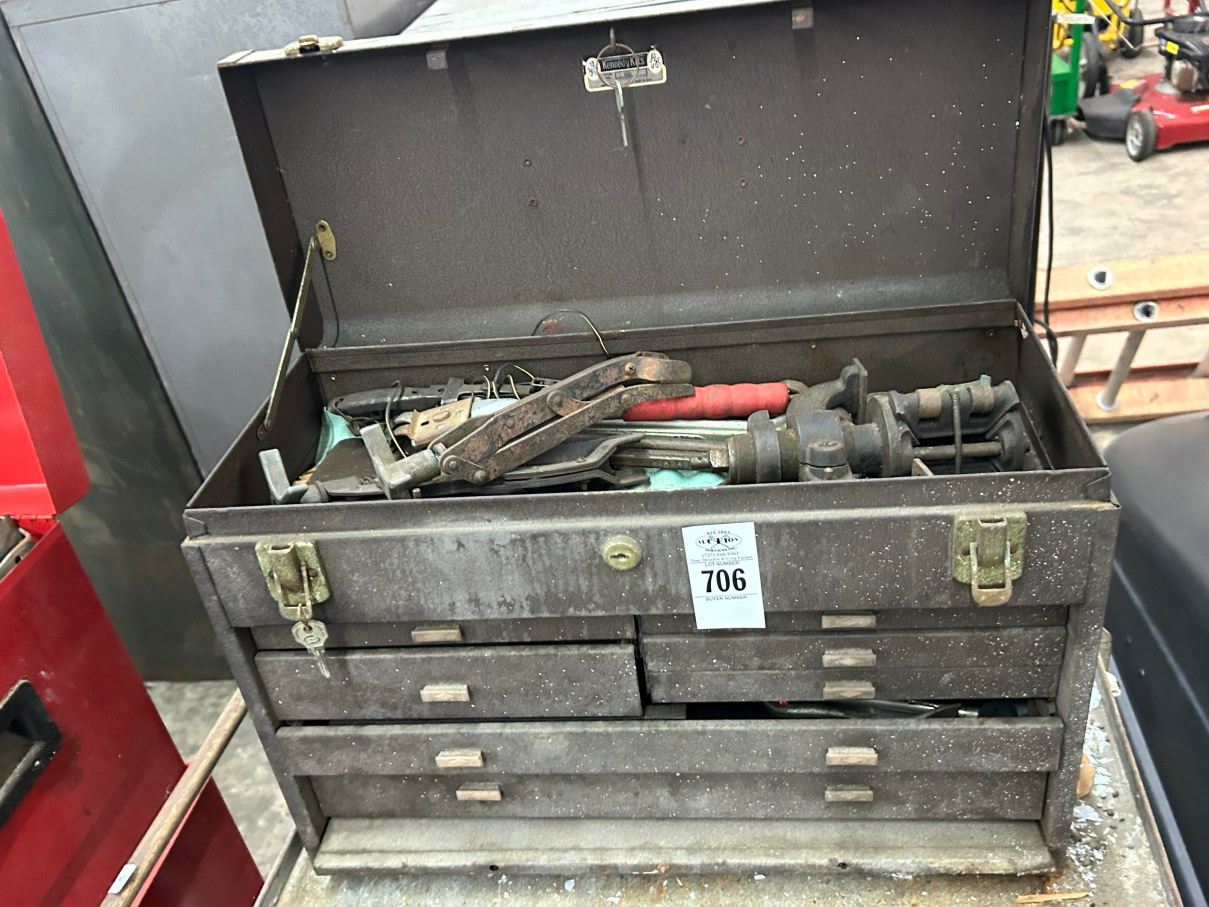 Lot 706 Vintage Machinist Toolbox w/Asst. Tools