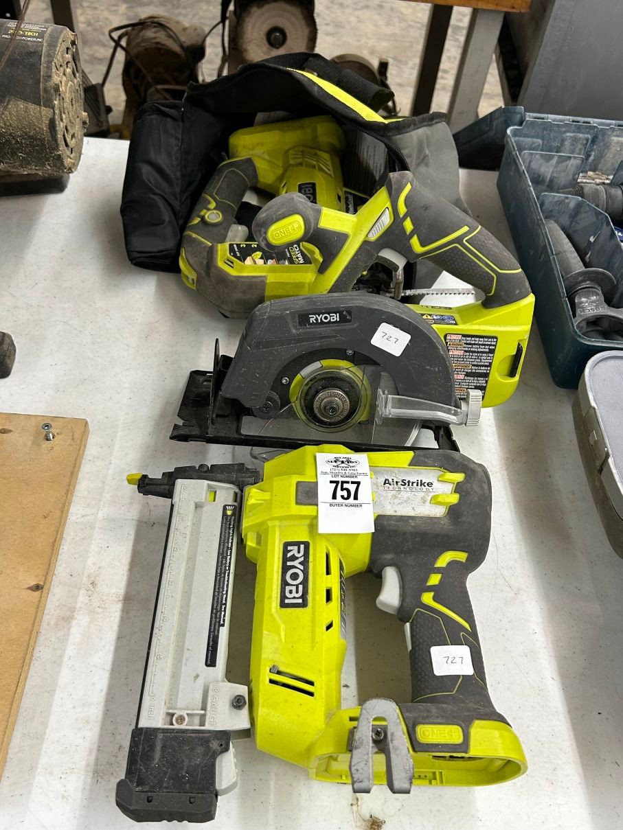 Lot 757 Ryobi Cordless Brad Nailer, Circular Saw, Jigsaw, - No Batteries/Charger