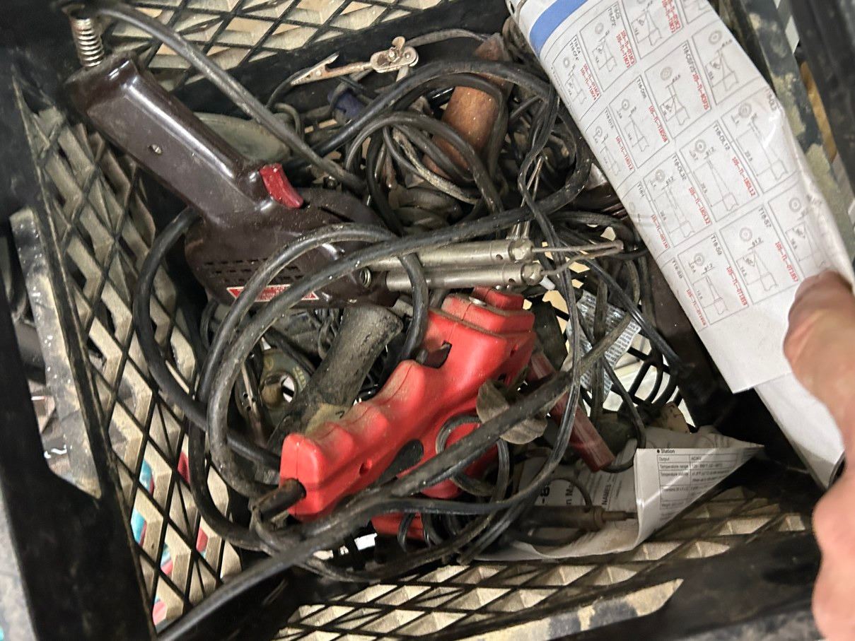 Solder Guns, Finishing Solvents, Wall Hooks, Spray Gun On Shelf