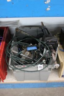 Lot 953 Bin w/Mobility Cart Drive Axle, Electric Motor, Caster, Tools