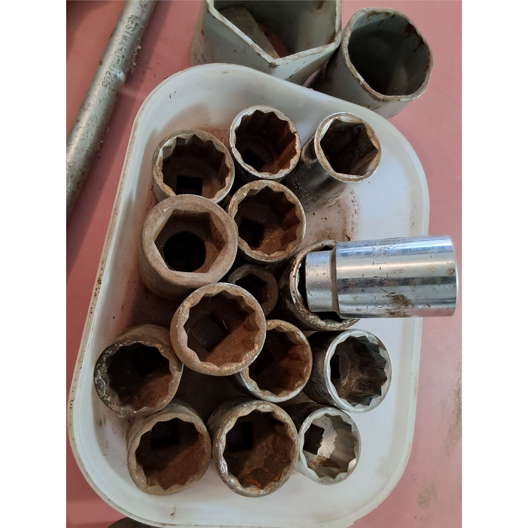 Various 3/4" drive sockets, 1 1-"x3/4"adapter