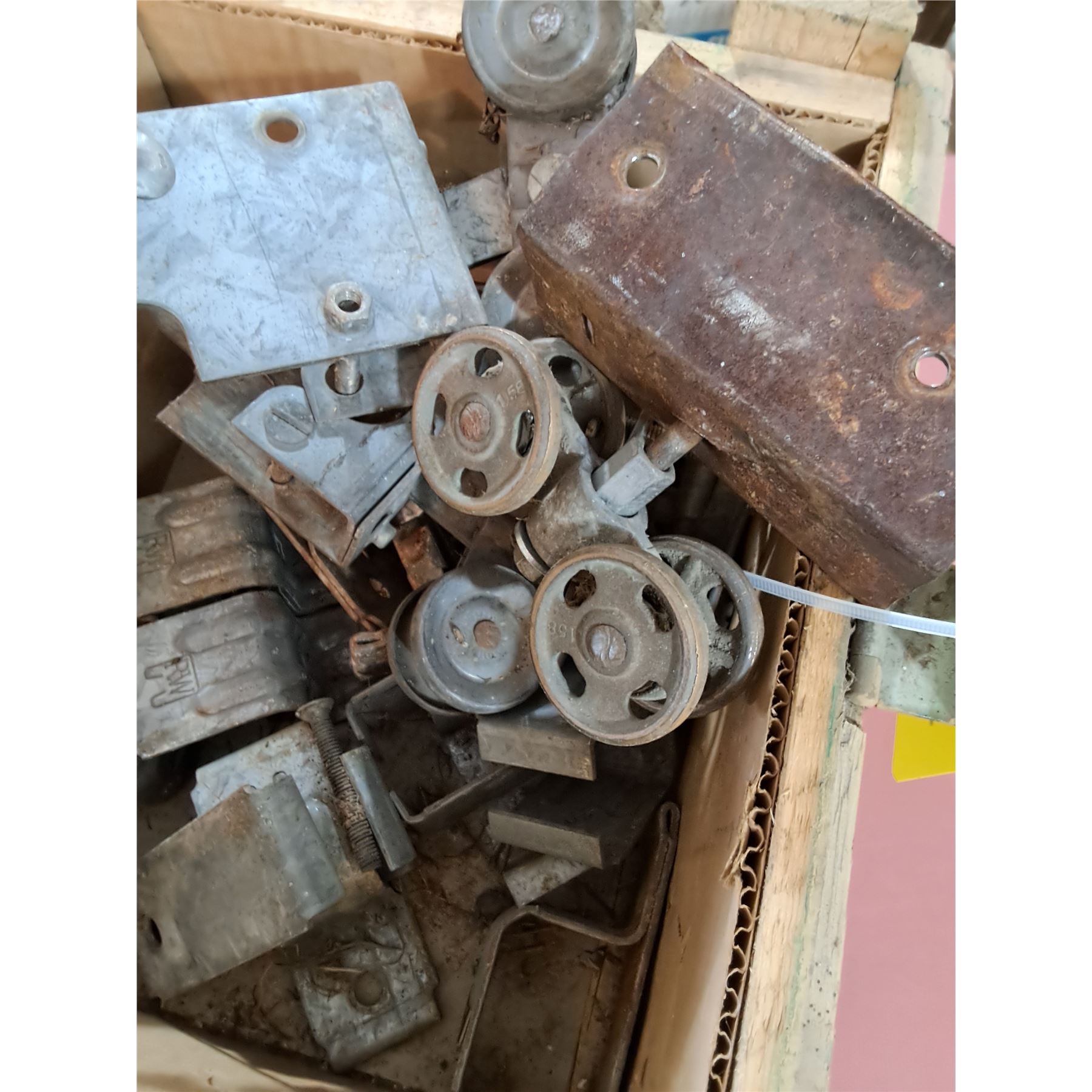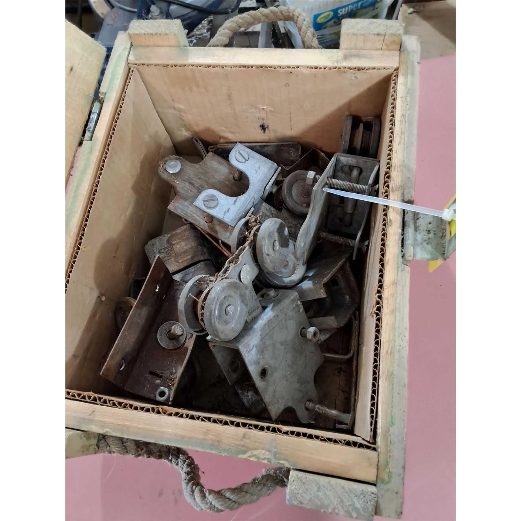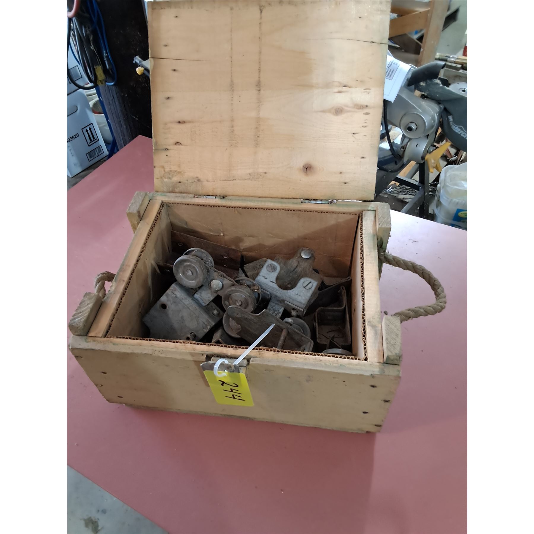 Lot 244 Wooden Crate with Barn Door Rollers, Hangers