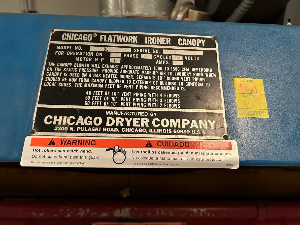 Lot 50a Chicago 90 Flatwork Ironer Canopy - S # 41854