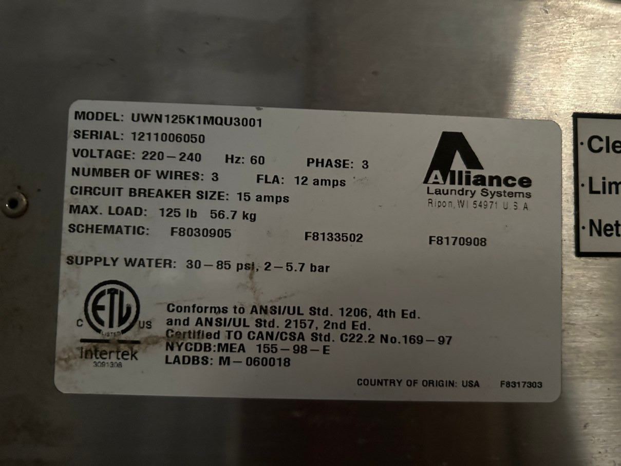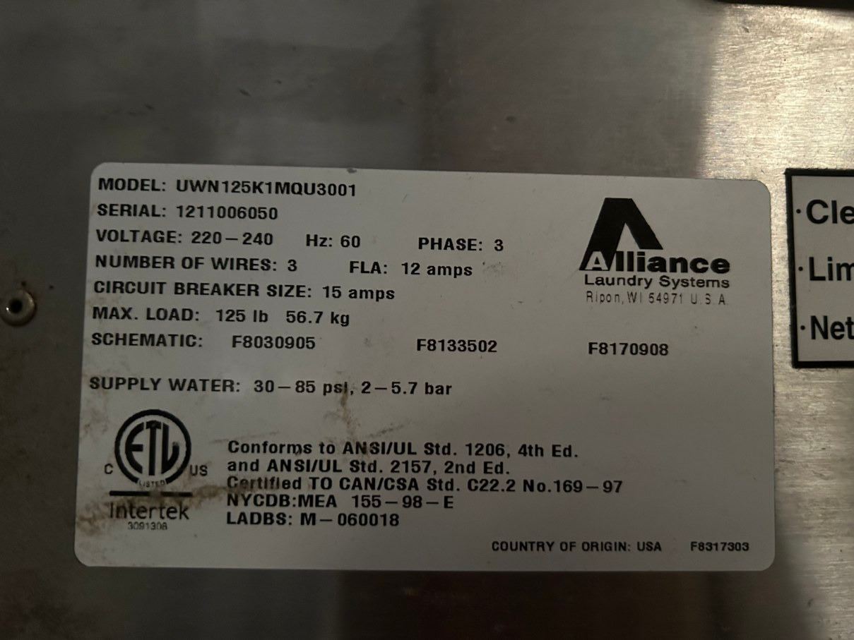 Lot 50i Unimac UWN125K1MQU3001 Industrial Clothes Washer - S # 1211006050